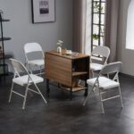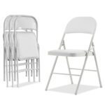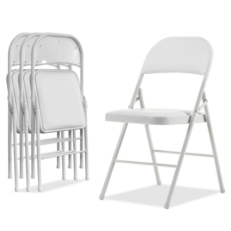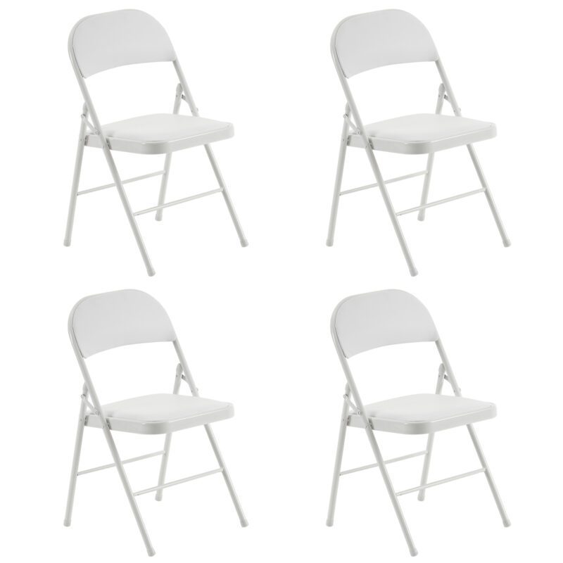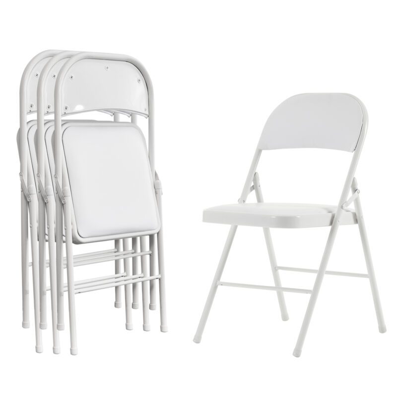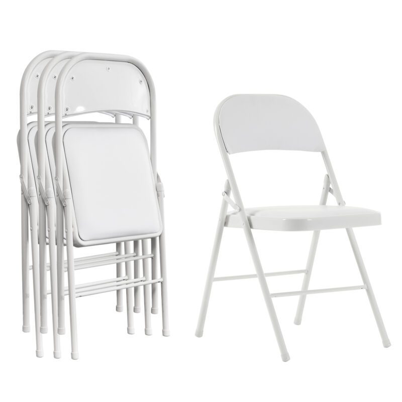 4 Pack White Foldable Steel and PVC Chairs for Convention & Exhibition