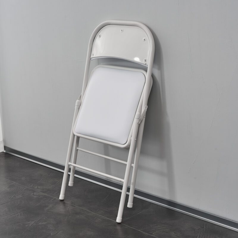 These elegant folding chairs feature a sturdy steel frame with PVC upholstery, ideal for conventions, exhibitions, dining rooms, and receptions. Sponge-filled cushions and backrests ensure comfort, while the cross-supporting structure enhances stability. Foldable design allows compact storage and easy transport. Plastic tube sleeves protect floors from scratches.