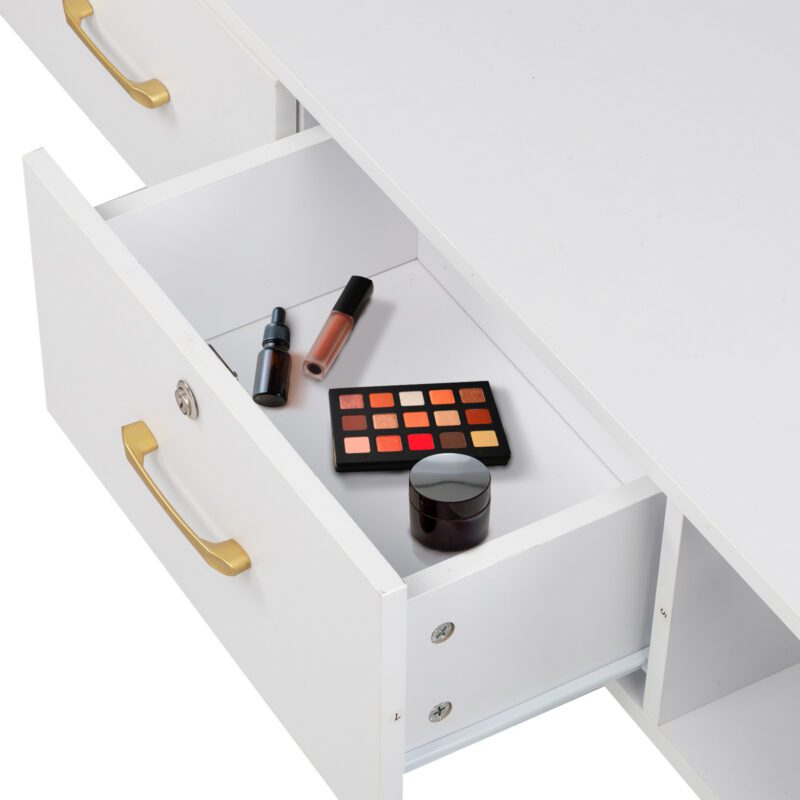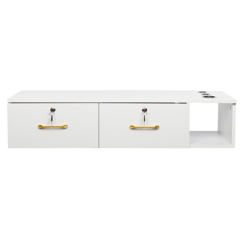 White Salon Cabinet with Two Drawers and Lock – 15mm E0 Particleboard, Linen Finish