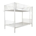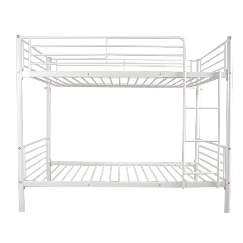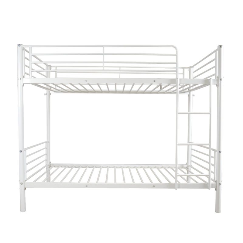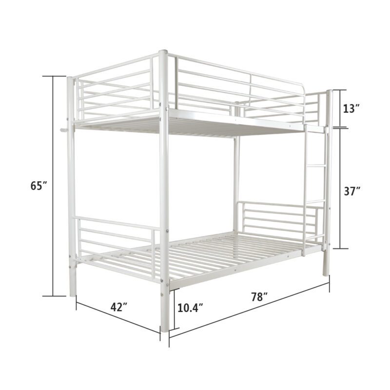 Twin Size Iron Bunk Bed with Ladder for Kids and Adults, White