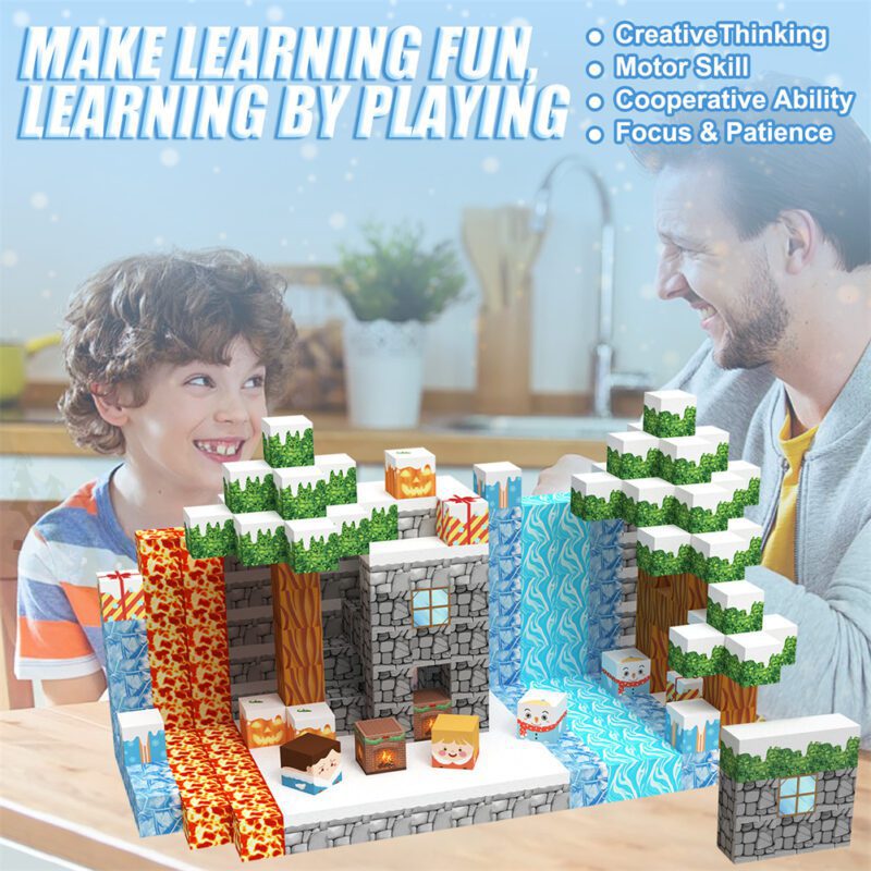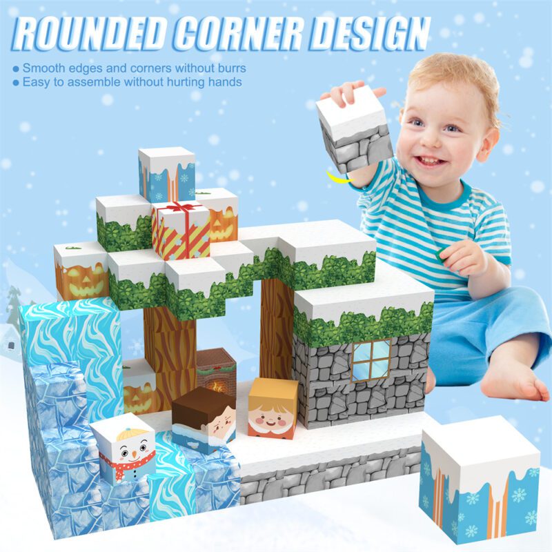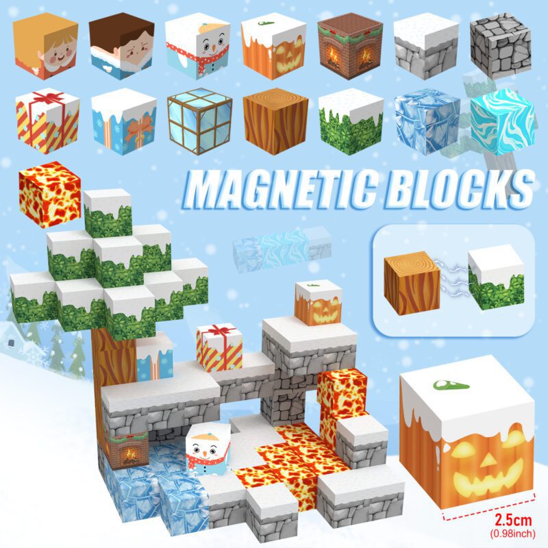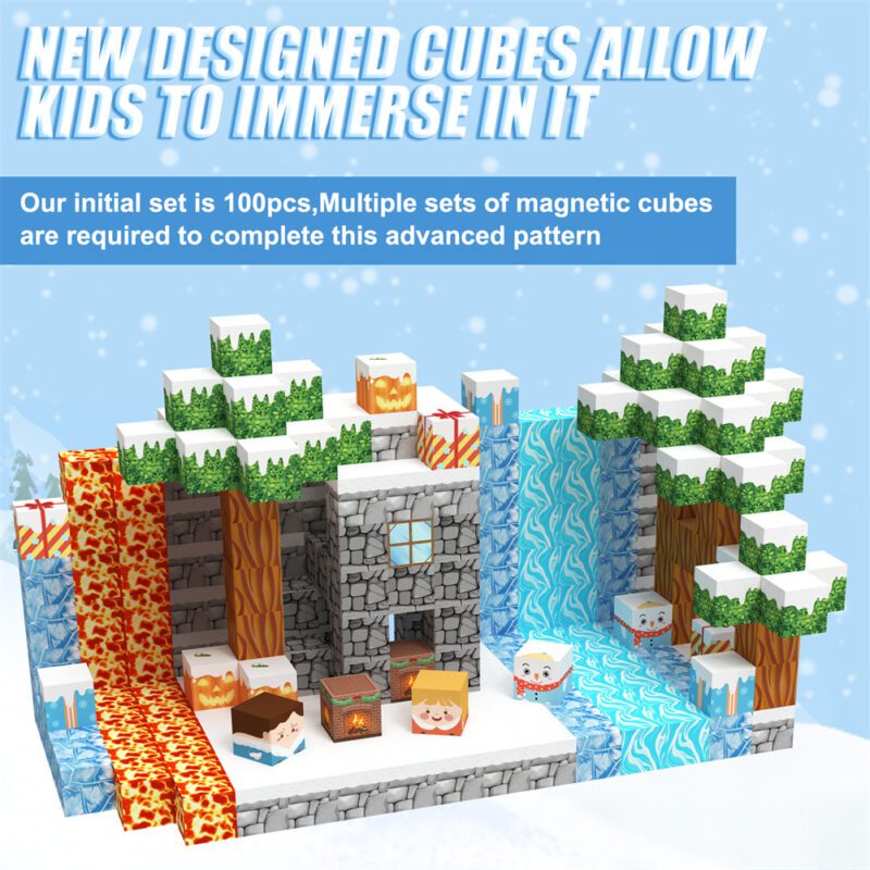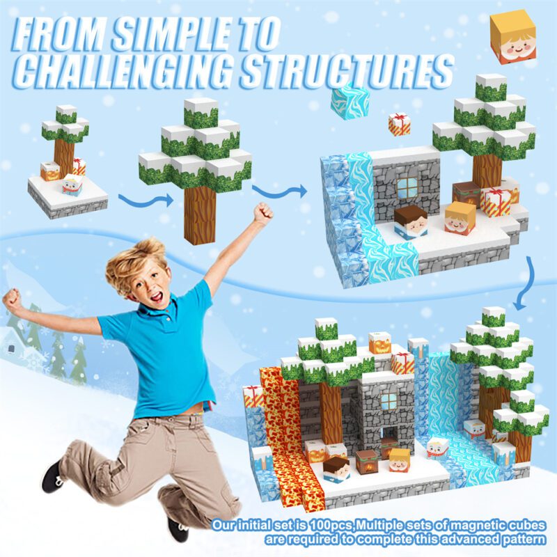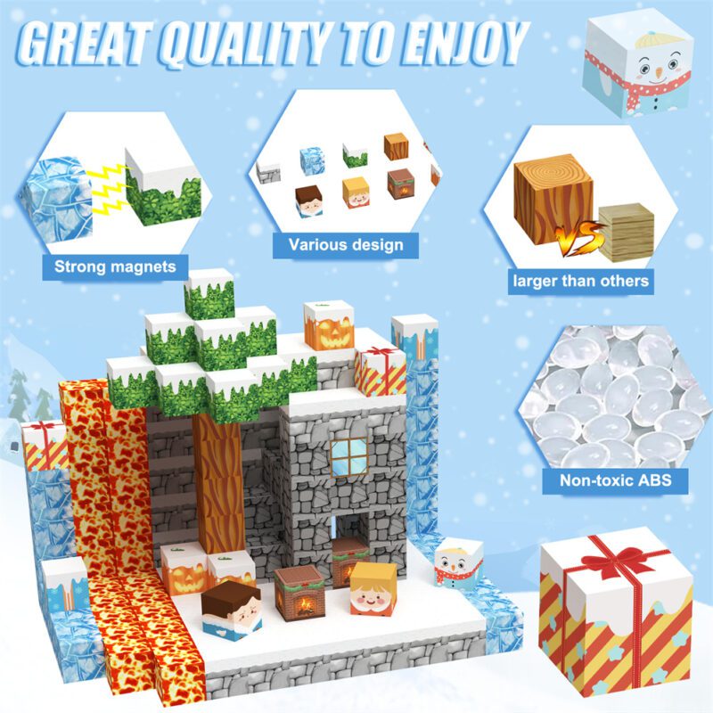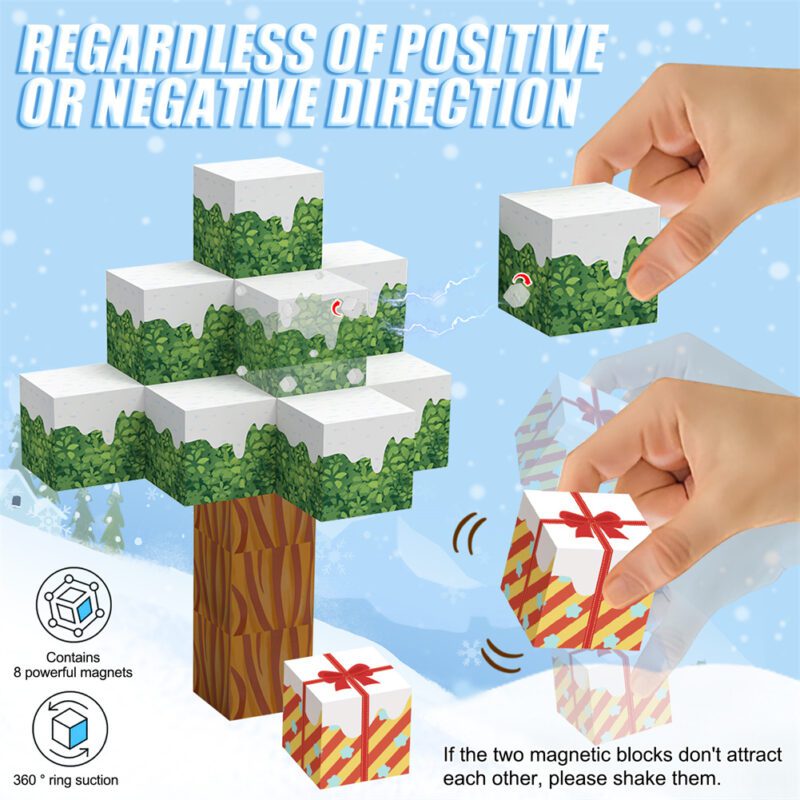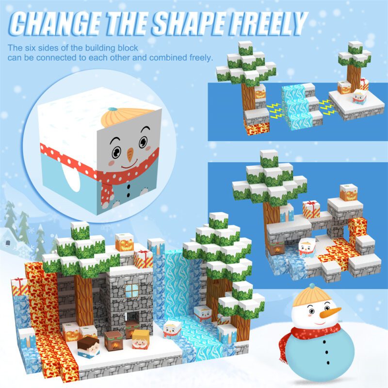 This 100-piece magnetic building blocks set sparks creativity and learning. Children can construct snow-themed scenes, integrate character blocks, and create endless structures. Magnetic connections foster spatial reasoning, fine motor skills, and cooperative play while providing screen-free entertainment. Designed for ages 1+ with rounded edges and easy-grip pieces, it includes 15 pattern variations and an instruction guide. Supports STEM learning through hands-on exploration of magnetism and structural concepts. Ideal gift for birthdays, Christmas, or educational activities. Set contains 100 durable plastic blocks with embedded magnets (2.5cm/1inch per square). For complex designs, multiple sets can be combined.