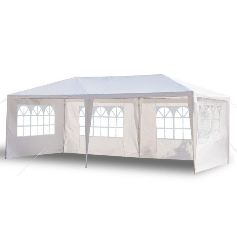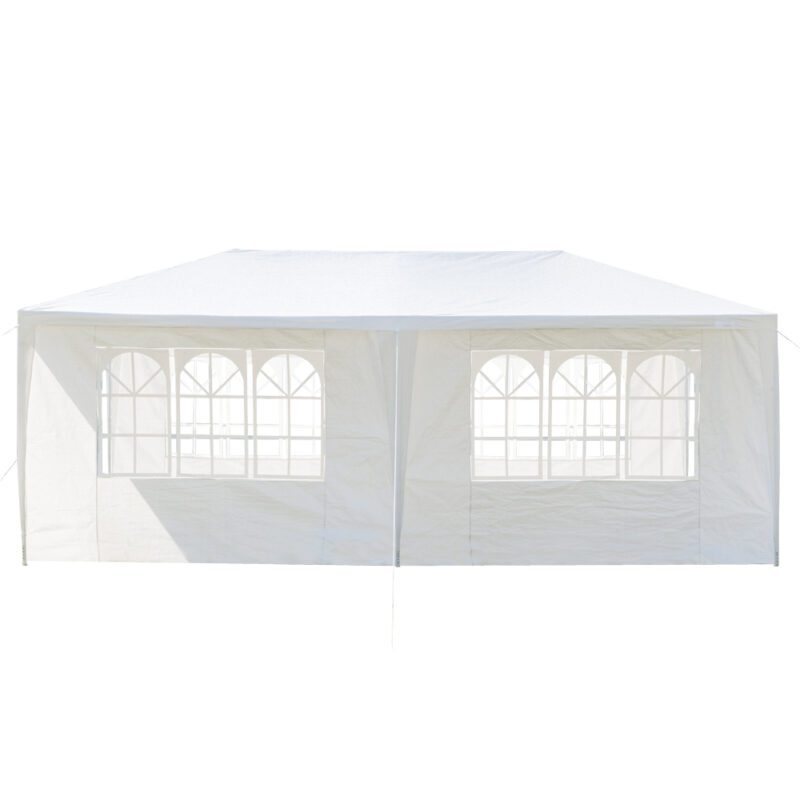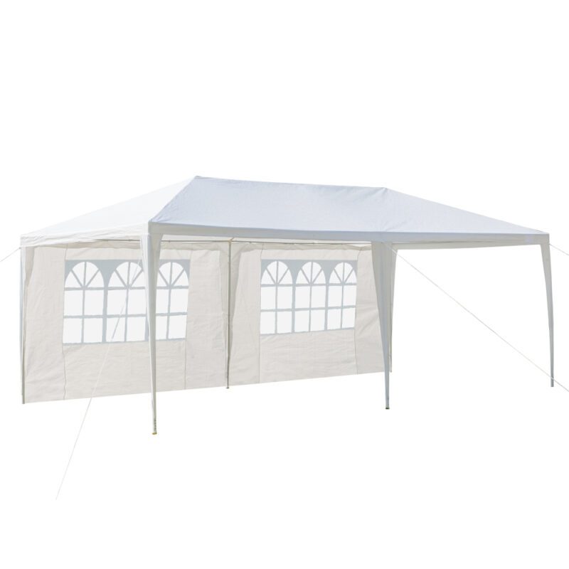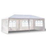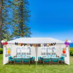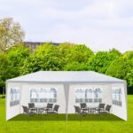 This 10’x20′ outdoor party tent provides shelter from sun and light rain, ideal for events like weddings, markets, and gatherings. Features four removable sidewalls with clear windows for natural light, durable waterproof PE material, and upgraded threaded pipe connections for stability. Includes ropes and ground stakes for secure setup.