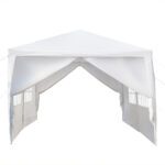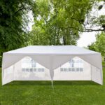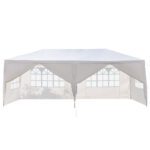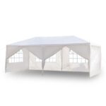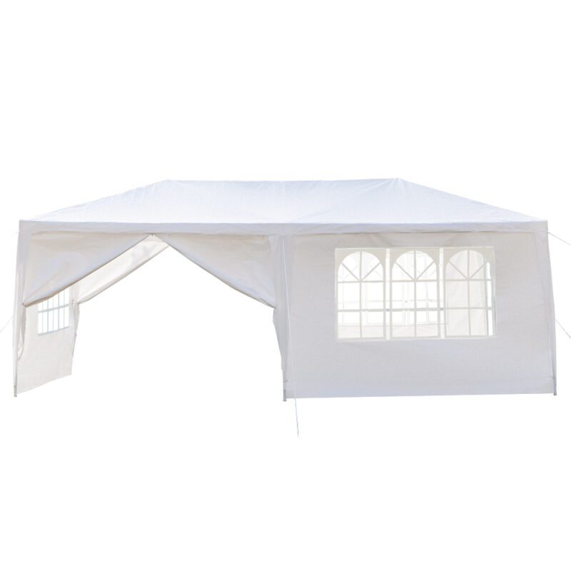 Complete your outdoor event with this spacious 10×20 ft party tent featuring 6 removable sidewalls. Provides shelter from sun and light rain, creating a versatile space for gatherings. Adjustable sidewalls with clear windows allow natural light and ventilation. Constructed with durable PE fabric and reinforced threaded pipe connections for stability. Includes ropes and ground stakes for secure setup. Ideal for weddings, parties, markets, and outdoor celebrations. Note: Not recommended for use in high winds or heavy rain.