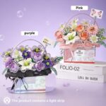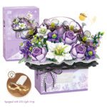 This 1212-piece DIY Rose Bouquet Building Block Set creates a beautiful floral display and makes an ideal gift for birthdays, Valentine’s Day, Christmas, and other special occasions. The set includes a gift box that transforms into a handheld display with an included artificial leather strap. Crafted from child-safe ABS plastic, the blocks are durable and easy to assemble. Building the bouquet promotes creativity and fine motor skill development. The assembled model measures approximately 26 cm x 16.5 cm x 24 cm (10.2″ x 6.5″ x 9.4″). Package dimensions: 21.5 cm x 13.5 cm x 8 cm. Package weight: 0.68 kg. Includes: 7 packs of building blocks (1212 pieces total), instruction manual, 2 sets of decorations and stickers, LED light string, and handle.
