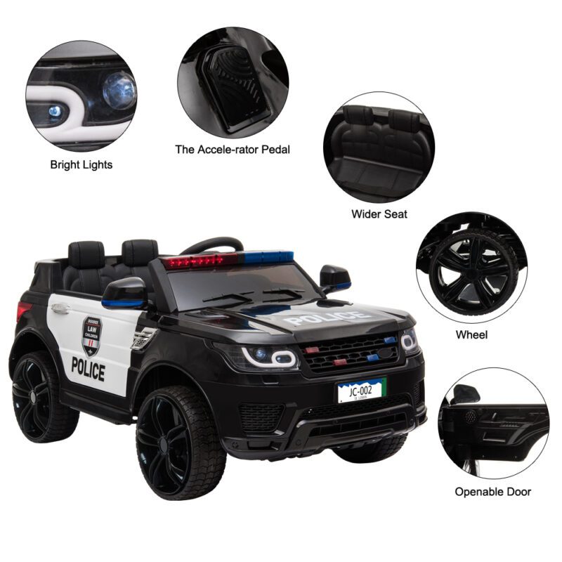 12V Kids Police Ride On Car with Remote Control, LED Lights & Music