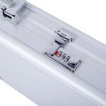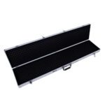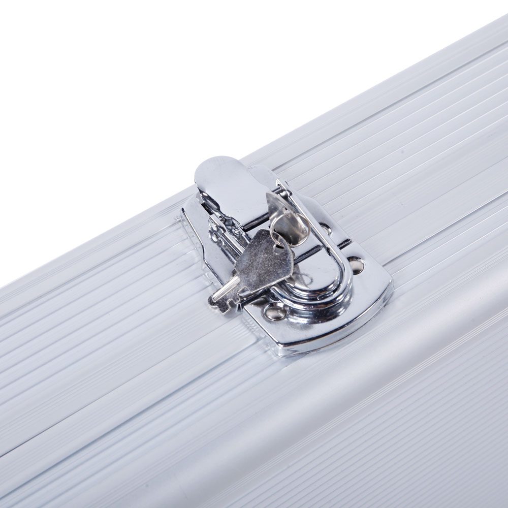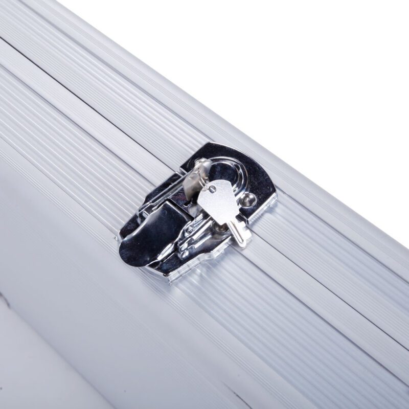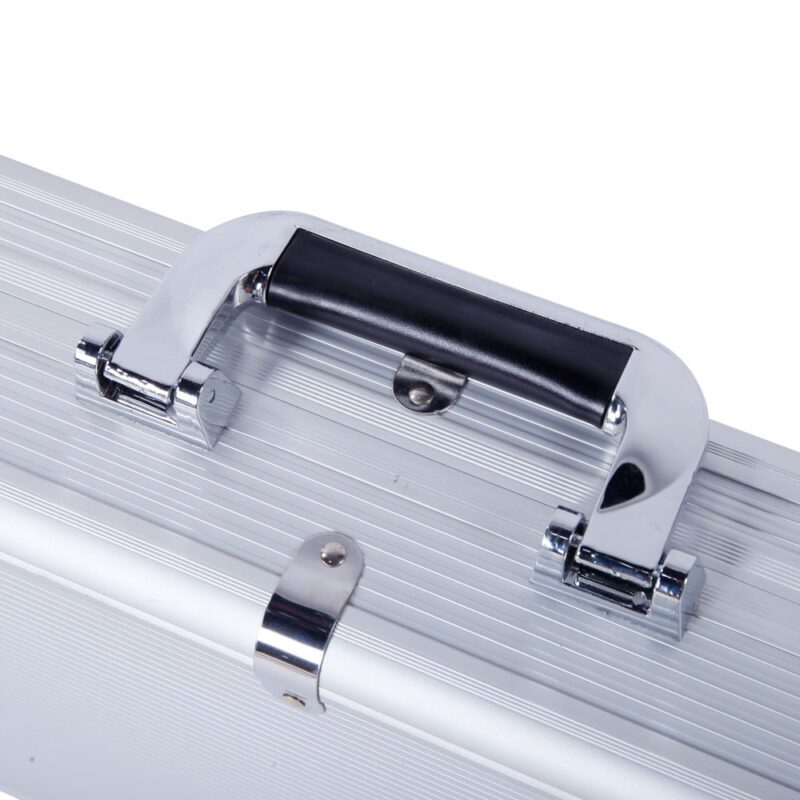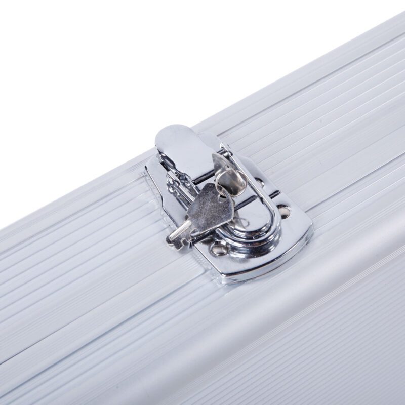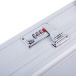 This aluminum pistol lock box provides secure storage for firearms. Constructed with durable aluminum, ABS, and foam materials, it features digit combination locks for enhanced security. The interior includes high-density sponge lining to protect guns from damage. Additional features include non-slip handles, anti-skid feet for stability, and a flexible switch for easy access.