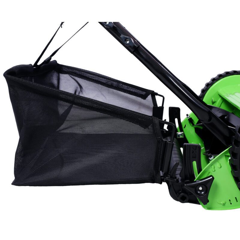 Green 14-Inch 5-Blade Push Reel Lawn Mower with Grass Catcher