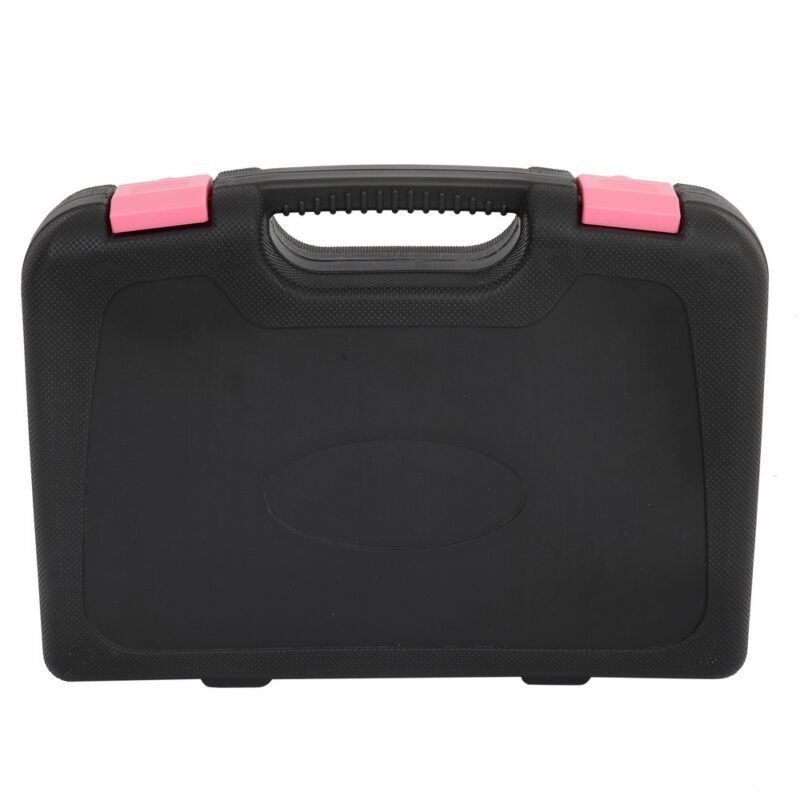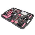 A comprehensive tool kit containing essential tools for common home repairs. Tools are crafted from 45C carbon steel or chrome vanadium steel, heat-treated, and chrome-plated for corrosion resistance. Handles feature double-dipped plastic grips, while the case is made of heavy-duty materials. All tools meet or exceed ANSI standards, undergoing rigorous testing for hardness, torque, finish, and usability.