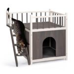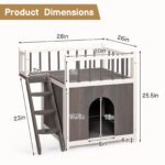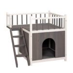 2-Story Wood Cat & Dog House for Outdoor/Indoor with Stairs, Grey/White