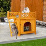 2-Story Wooden Feral Cat House for Outdoor and Indoor with Stairs, Yellow