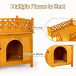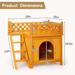 Provide a comfortable retreat for your pets with this 2-story wooden cat house. Designed for outdoor and indoor use, it features a balcony, stairs, and spacious interior. Crafted from eco-friendly fir wood, this durable shelter includes a large entry for easy access and accommodates mats or litter boxes. The yellow finish adds charm to any space.
