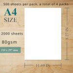 High-quality 80GSM A4 paper with smooth white finish ensures clear, sharp printing results. Standard size 8.27 x 11.69 inches (210 x 297 mm) compatible with all printers. Each package contains 500 sheets; four packages provide 2000 sheets total for high-volume office use. Suitable for documents, menus, images, and invitations. Offers excellent value with reliable performance through rigorous quality testing.