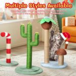 Cactus Cat Scratching Post with Natural Sisal and Flower Toppers – 26 Inch
