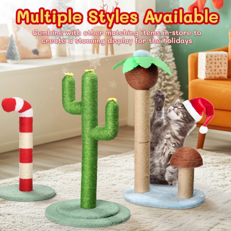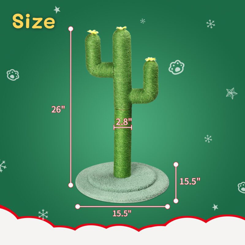Enhance your home with this charming cactus-shaped cat scratching post featuring natural sisal and bright yellow flower toppers. Designed for indoor cats, the durable sisal surface satisfies scratching instincts while protecting furniture. Its sturdy base ensures stability during play, and the whimsical design doubles as home decor. Quick to assemble, this 26-inch scratcher promotes feline exercise and claw health. Specifications: 15.5-inch base diameter, 2.8-inch post diameter. Includes one complete scratching post.