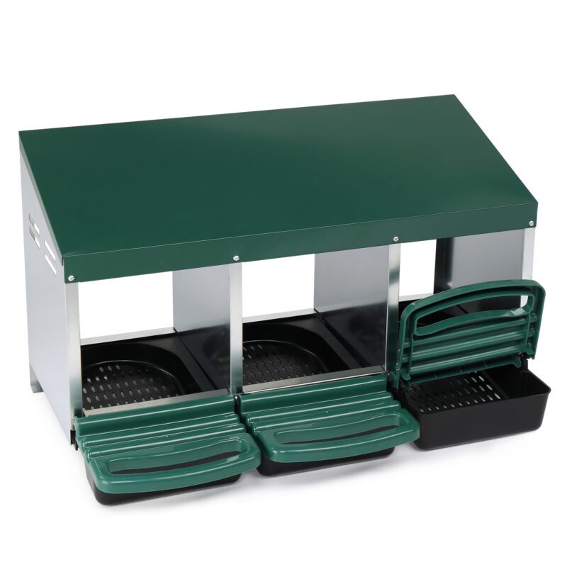 3 Compartment Roll Out Chicken Nesting Box with Plastic Basket – Green