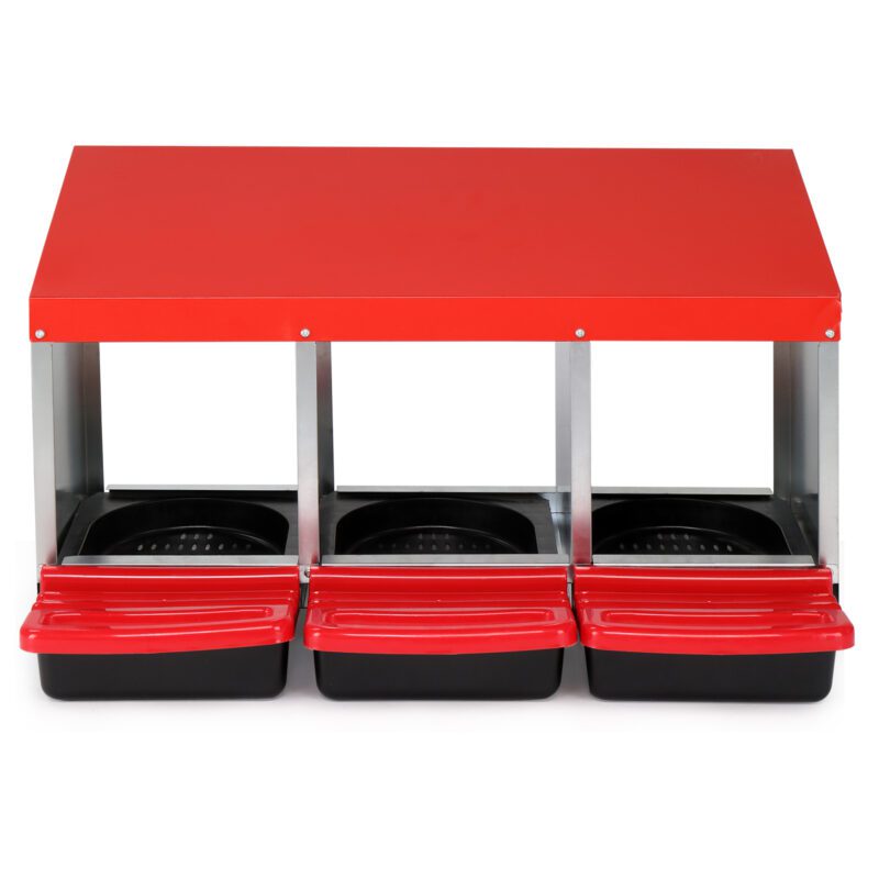 Introduction: Provide comfort and security for your poultry with this 3-compartment chicken nesting box. Designed to support natural brooding instincts of hens and ducks, it offers a private laying space with durable steel and plastic construction that withstands weather conditions. The hen-friendly design features an angled plastic bottom for secure egg retention and easy collection.