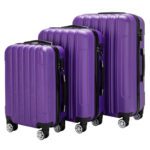 This 3-in-1 multifunctional travel luggage set offers ample storage space for travel or daily organization. Constructed with durable ABS plastic and metal reinforcement, it maintains structural integrity under pressure. The smooth finish features a vibrant purple color that resists dirt and simplifies cleaning. Sturdy handles support substantial weight while the high-toughness design withstands pulling forces. Includes three sizes: