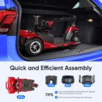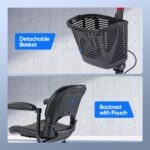 This 3-wheel electric mobility scooter features a foldable design for easy transport and storage. With a weight capacity of 265 lbs and a range of 12.4 miles per charge, it’s suitable for indoor and outdoor use. Includes a storage basket, adjustable swivel seat, LED headlights, and non-marking tires. The scooter disassembles into lightweight pieces for car transport and is TSA-approved. Safety certified with anti-rollover wheels and regenerative brakes. Dimensions: 33″D x 19.7″W x 33″H. Top speed: 3.7 mph.