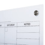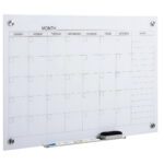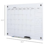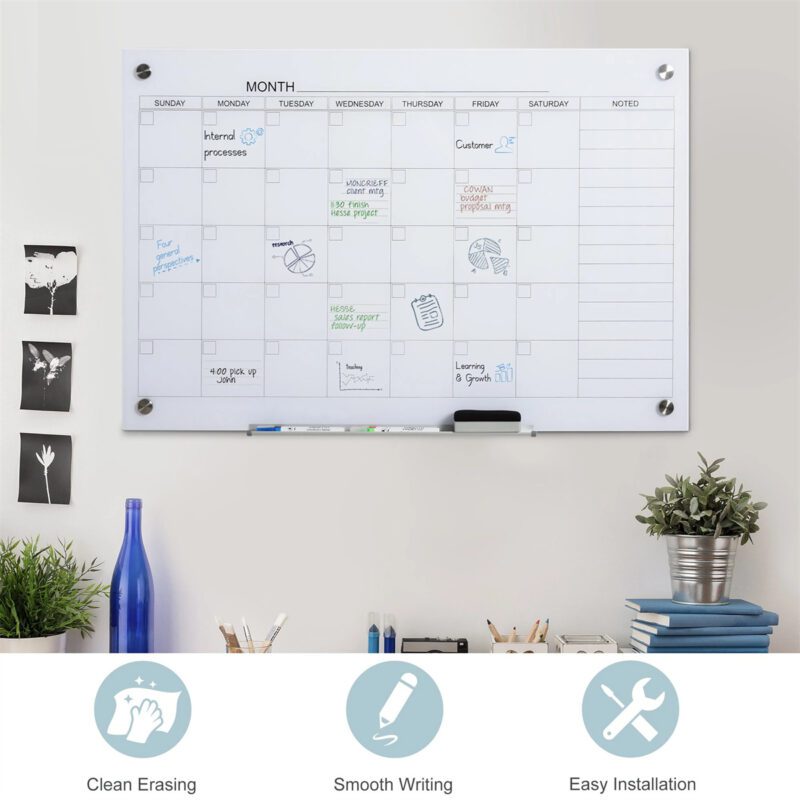 This complete dry erase calendar set features a 35.5″ x 23.5″ glassboard monthly calendar, 4 dry erase markers, and an eraser. Easily mount it on the wall with included glass clips. The frameless design and smooth glass surface allow for effortless writing, erasing, and cleaning. Includes an aluminum alloy marker holder for organized storage. Ideal for home, office, school, or group discussions, this reusable calendar helps organize schedules without wasting paper. Suitable for professionals, students, and families.