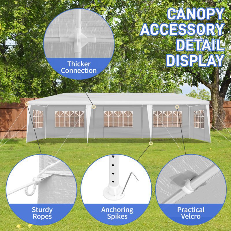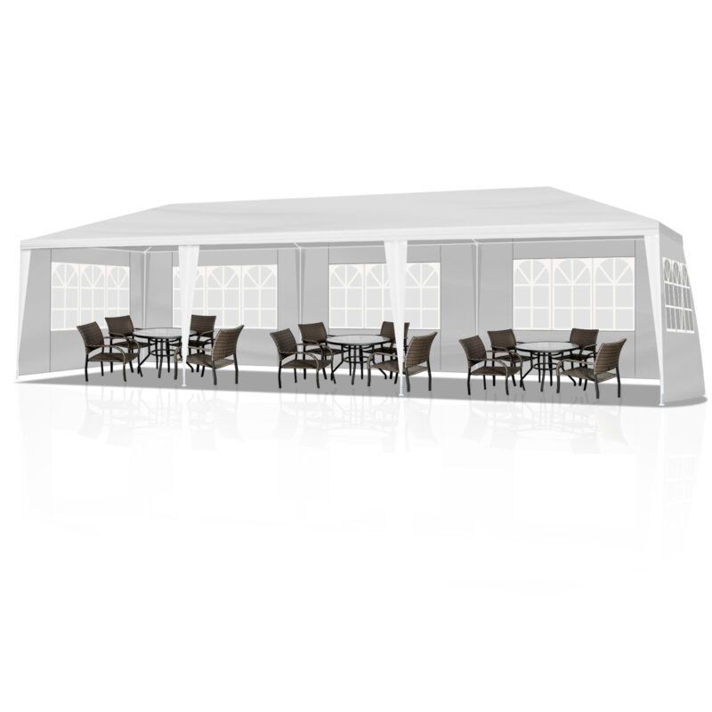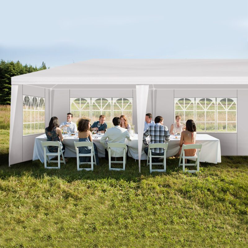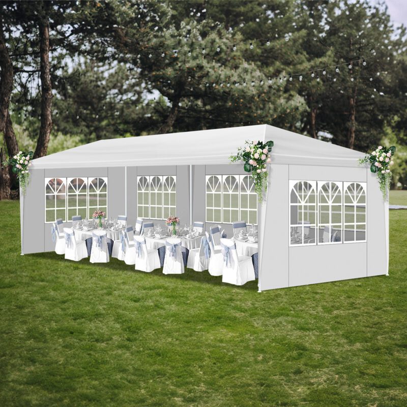 Complete your outdoor event with this spacious and versatile party tent. Ideal for backyard gatherings or commercial events, it provides shelter from sun and light rain, creating a comfortable space for food and drinks. The design adds a festive atmosphere to celebrations.
