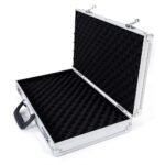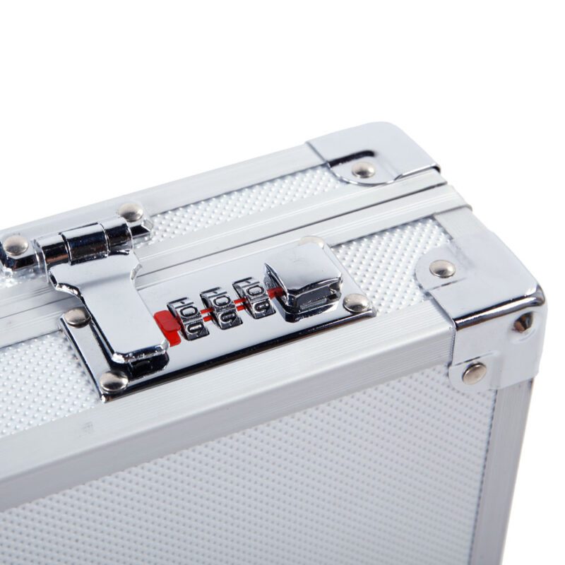 This aluminum gun lock box case is constructed from durable aluminum, ABS, and foam materials for reliable firearm protection. It features a digit combination lock for enhanced security and high-density sponge lining to cushion your guns. Key attributes include foam inserts for damage prevention, a non-slip handle for comfortable carrying, anti-skid feet for stability, and an easy-open switch. Specifications: Material – Aluminum, ABS, Foam; Color – Silver; Dimensions – 45 x 25 x 7.5 cm (17.71 x 9.84 x 2.95 inches); Weight – 1.35 kg (2.98 lbs). Package includes: 1 x Gun Case, 1 x Instruction Manual.