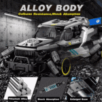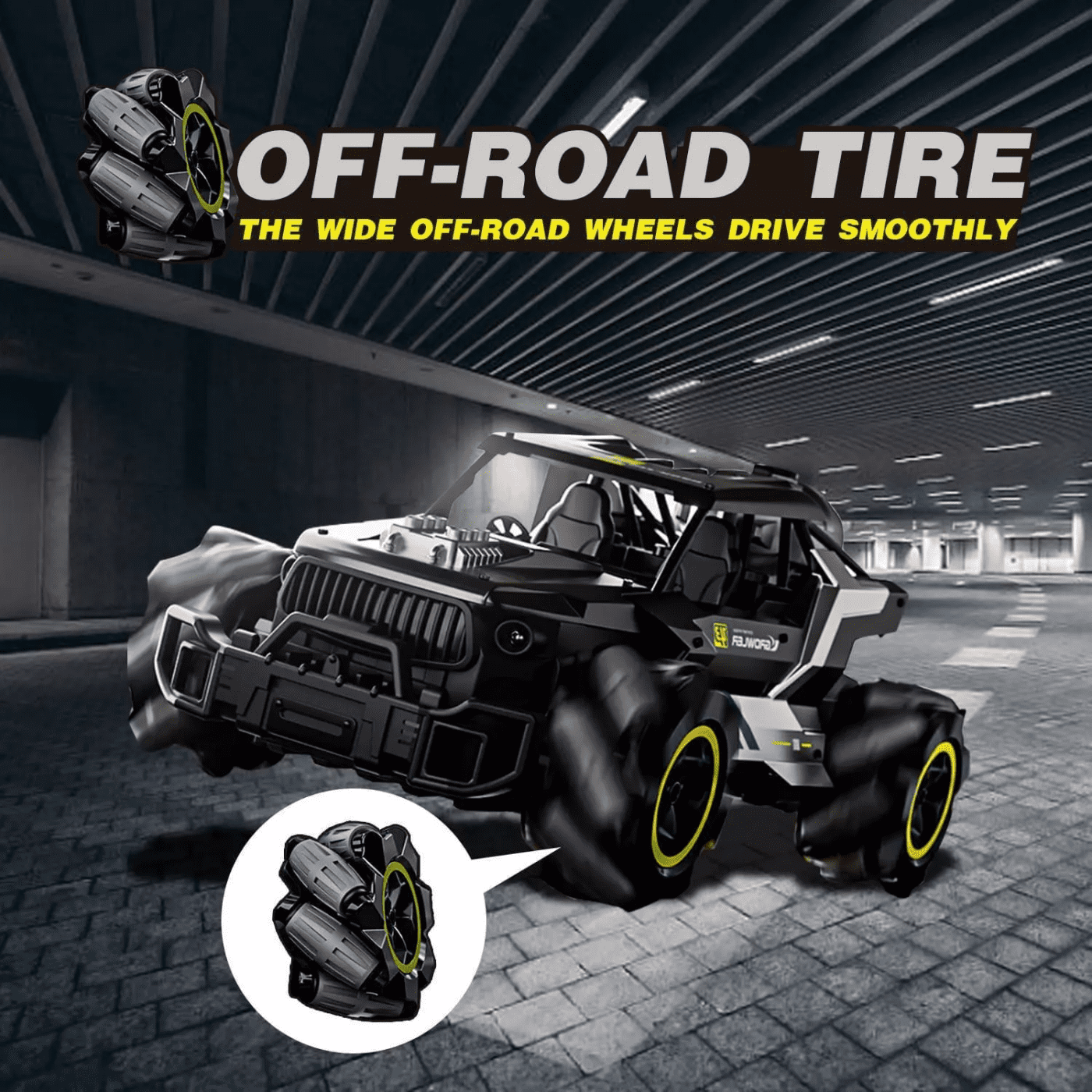 Control this RC truck using either gesture-sensing watch technology or the included remote controller. The 2.4 GHz system enables interference-free operation. Features rear fog spray function with LED lights—add water to create visual mist effects during operation. Includes two 1200mAh rechargeable batteries providing approximately 70 minutes of total playtime. Durable ABS plastic and metal construction with anti-crash tires offers impact resistance for various terrains including grass, sand, and rocky paths. Ideal gift for birthdays and special occasions. Package includes: 1 RC Truck, 1 Remote Control, 1 Watch Sensor Remote, 2 Truck Batteries, 1 USB Charging Cable, 1 Screwdriver.