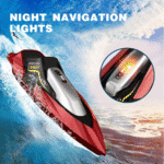 Experience high-speed fun with the 4DRC S5 RC boat, designed for adults and kids. This remote control boat reaches speeds up to 20 mph using a 4-channel 2.4 GHz controller with 150-meter range. The self-righting capsize recovery feature automatically corrects the boat’s position if overturned. A low battery alarm alerts you via the controller when power is low, ensuring timely retrieval. Race multiple boats simultaneously without signal interference thanks to anti-disruption technology. An exciting gift for birthdays and outdoor activities. Includes boat, remote, rechargeable battery, USB cable, and spare propellers. Dimensions: 12.5 x 3.5 x 3.5 cm; Weight: 150 g.