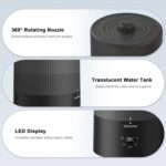 This cool mist humidifier produces up to 250ml/h of mist to quickly humidify spaces up to 415 sq ft, easing dryness and discomfort. Its 4L capacity provides up to 50 hours of operation on low mist settings. The top-fill design features a wide opening for easy refilling and cleaning without removing the tank, while leak prevention ensures mess-free use. In sleep mode, it operates at just 26dB with display lights off, and the adjustable night light creates a soothing environment. Set timers for 2-12 hours to customize humidity for family, pets, or plants. The 2-in-1 function allows essential oil diffusion for aromatherapy. A 360° rotating nozzle directs mist flow, and automatic shut-off activates when water is low. Energy efficient at 18 watts, it minimizes electricity costs during continuous use.