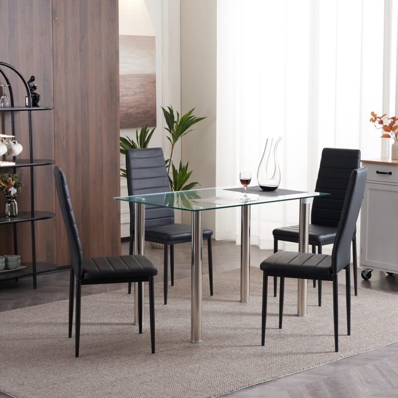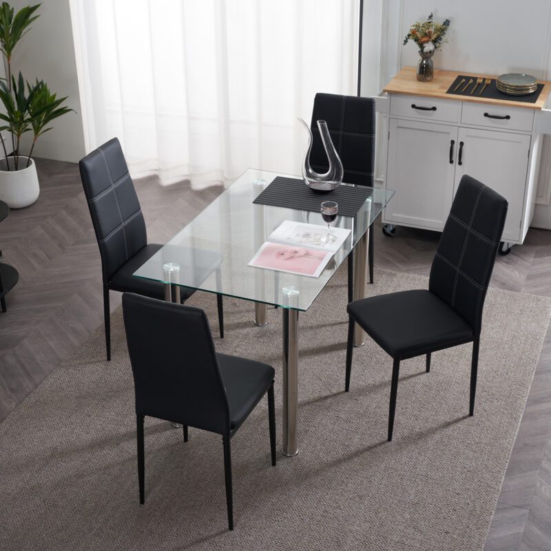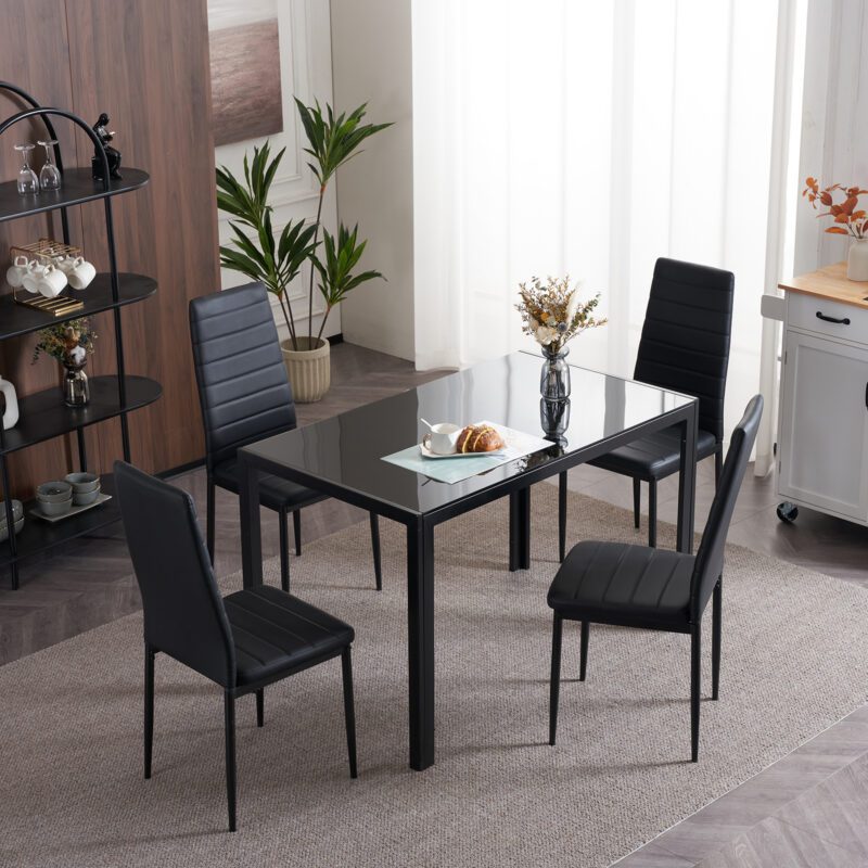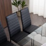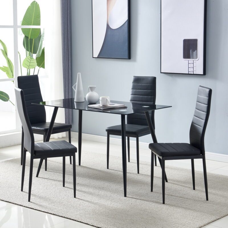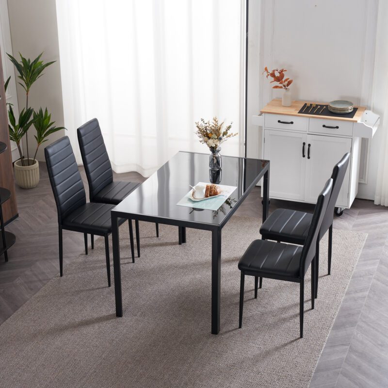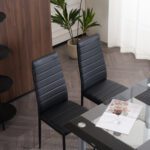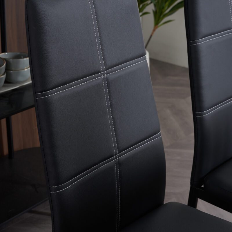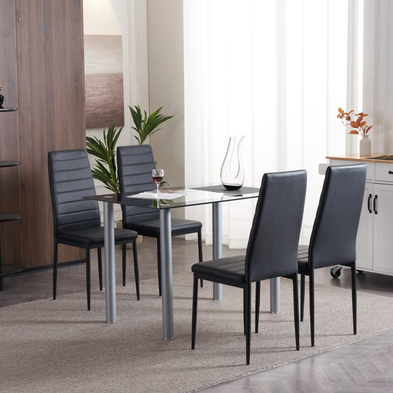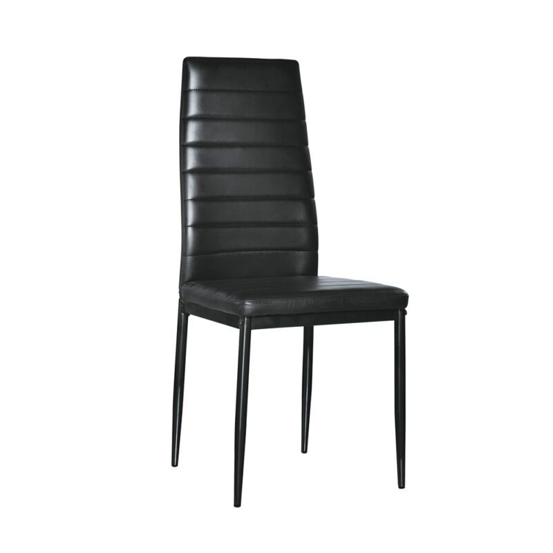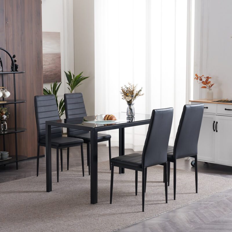 Create an elegant dining space with this set of 4 black dining chairs. Featuring soft PU leather upholstery, these chairs combine durability with comfort. The waterproof, stain-resistant surface ensures easy maintenance, while the high-density foam cushion and ergonomic high-back design provide lasting support. Simple styling complements various table designs. Sturdy iron tube frames offer reliable stability with a 120kg weight capacity. Includes assembly tools for straightforward setup.