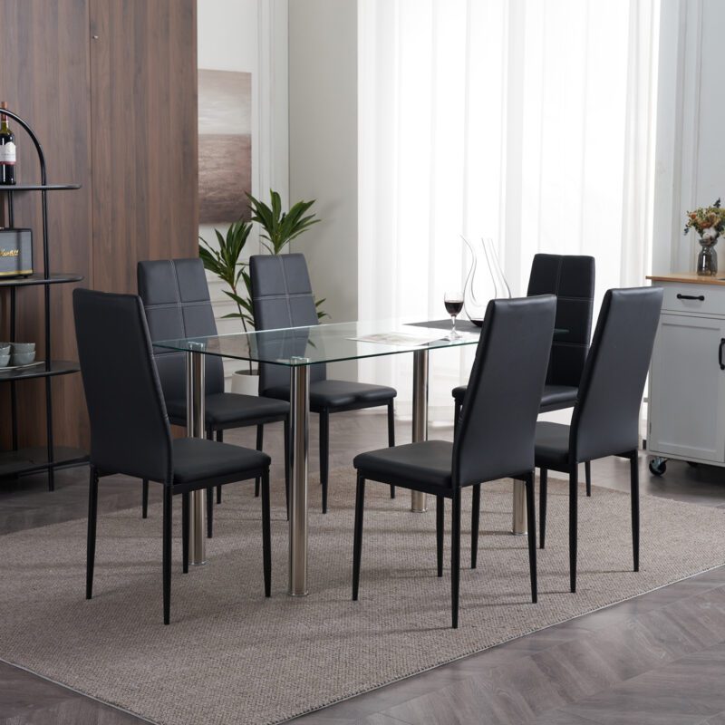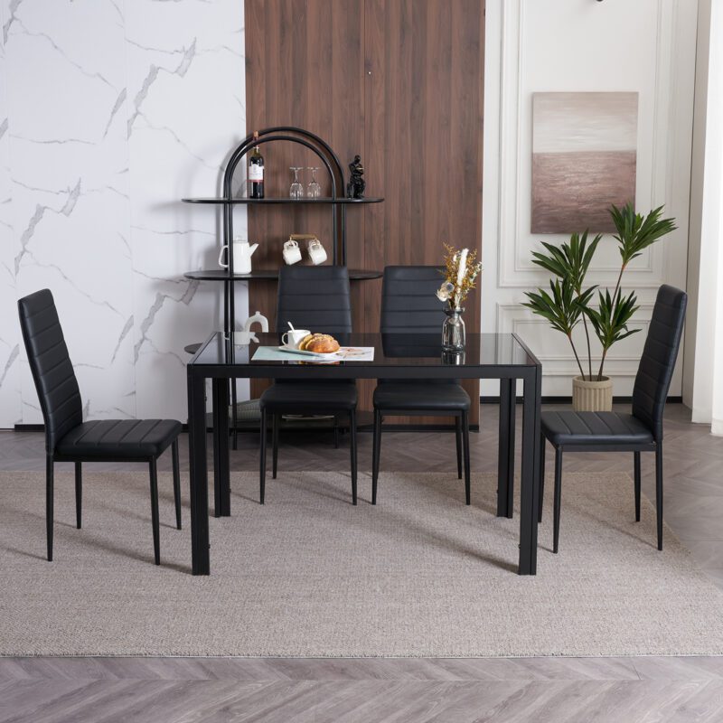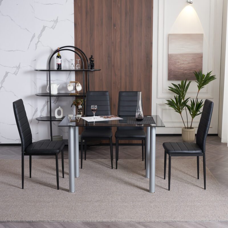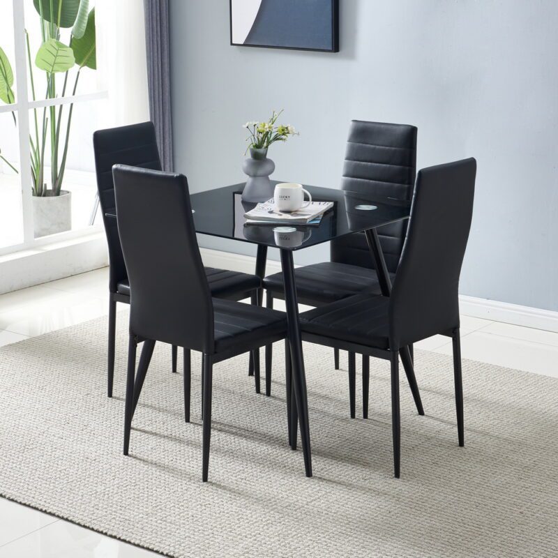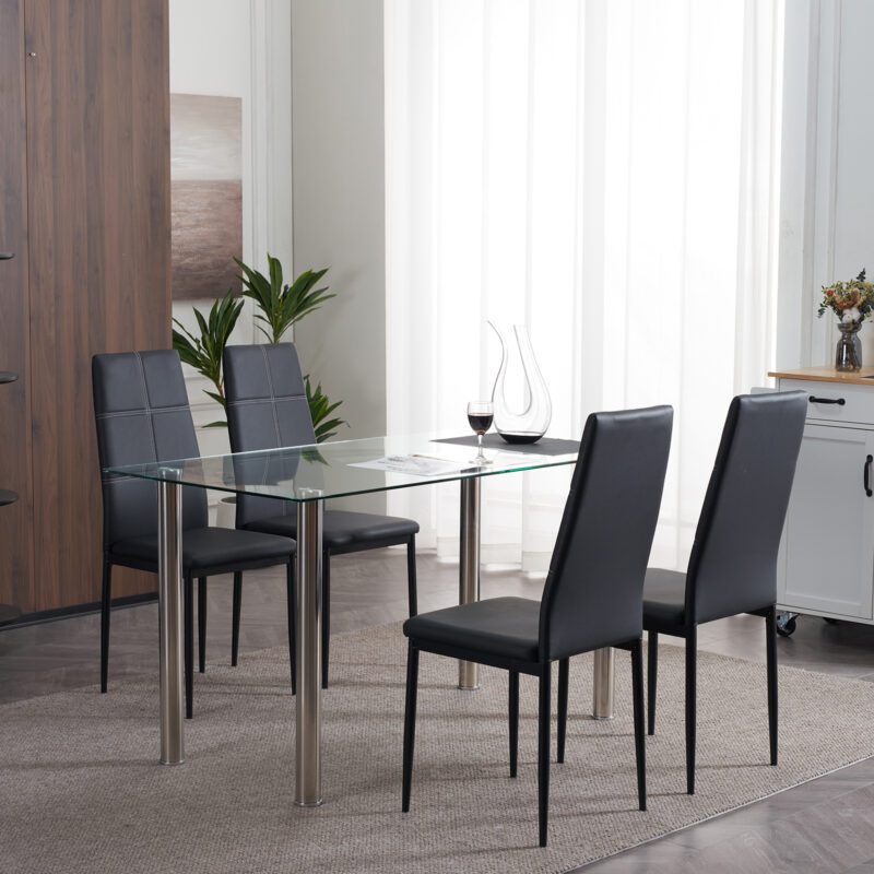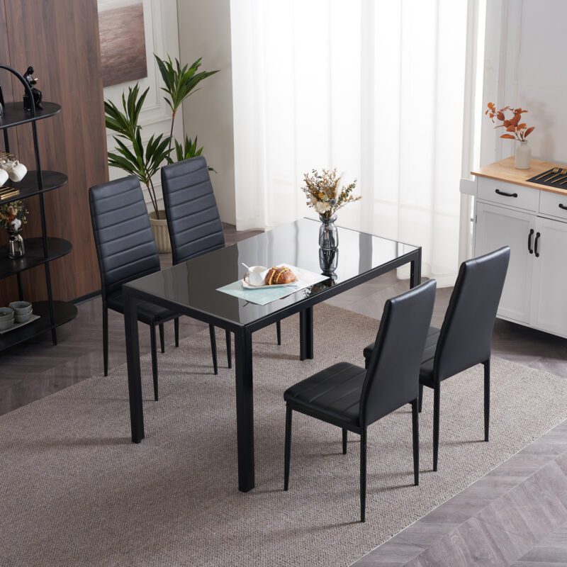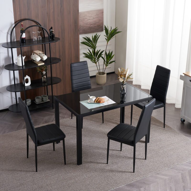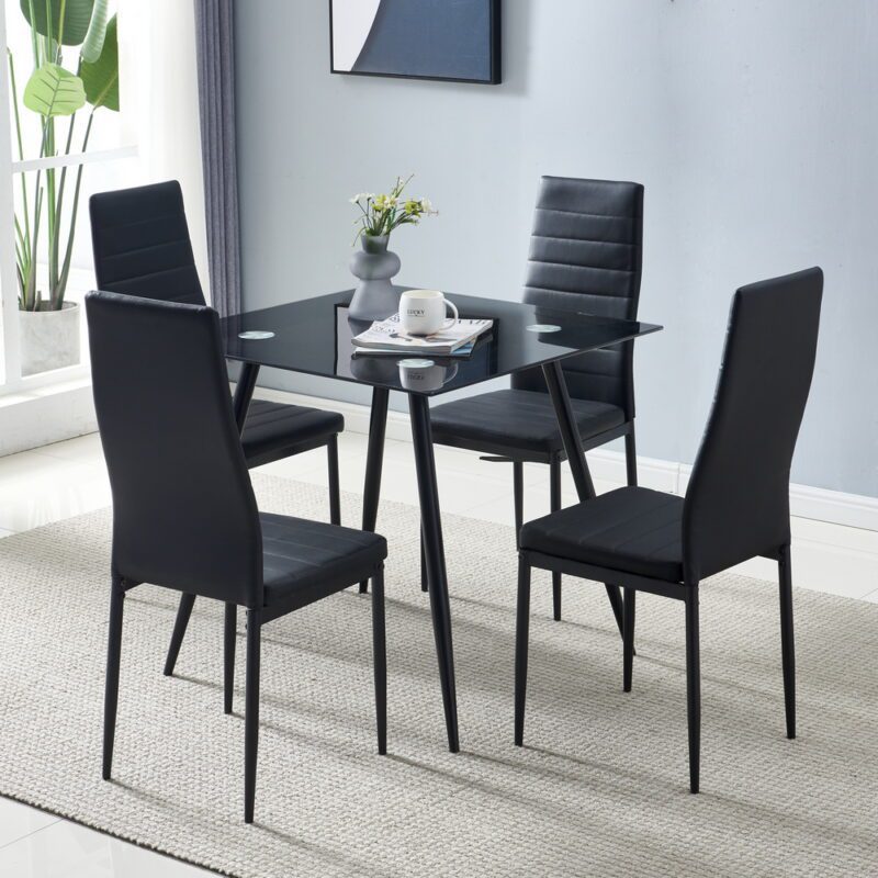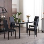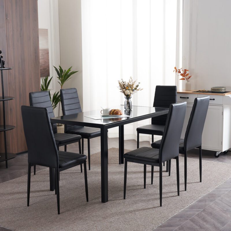 Create an elegant dining space with this set of 4 black dining chairs. Featuring soft PU leather upholstery, these chairs combine durability with comfort. The waterproof, stain-resistant surface ensures easy maintenance, while the high-density foam cushion and ergonomic high-back design provide lasting support. Simple styling complements various table designs. Sturdy iron tube frames offer reliable stability with a 120kg weight capacity. Includes assembly tools for straightforward setup.