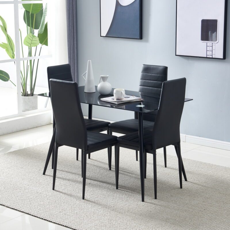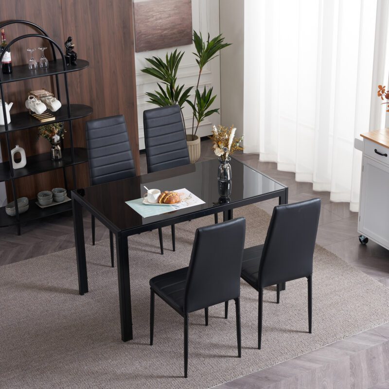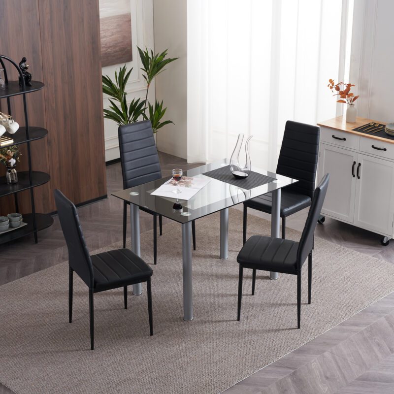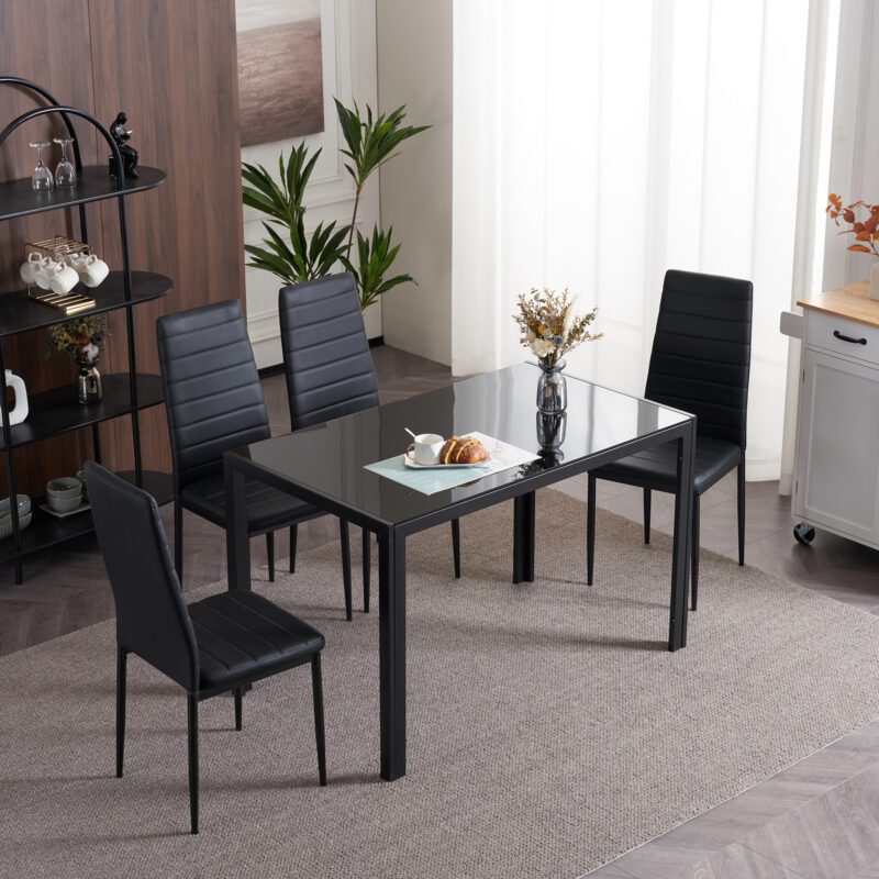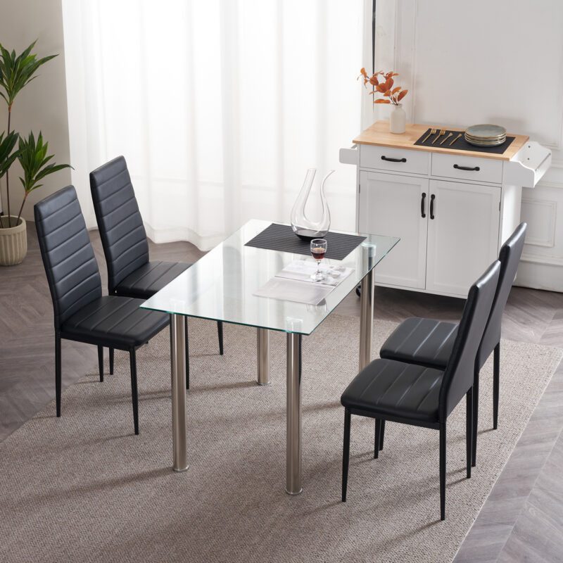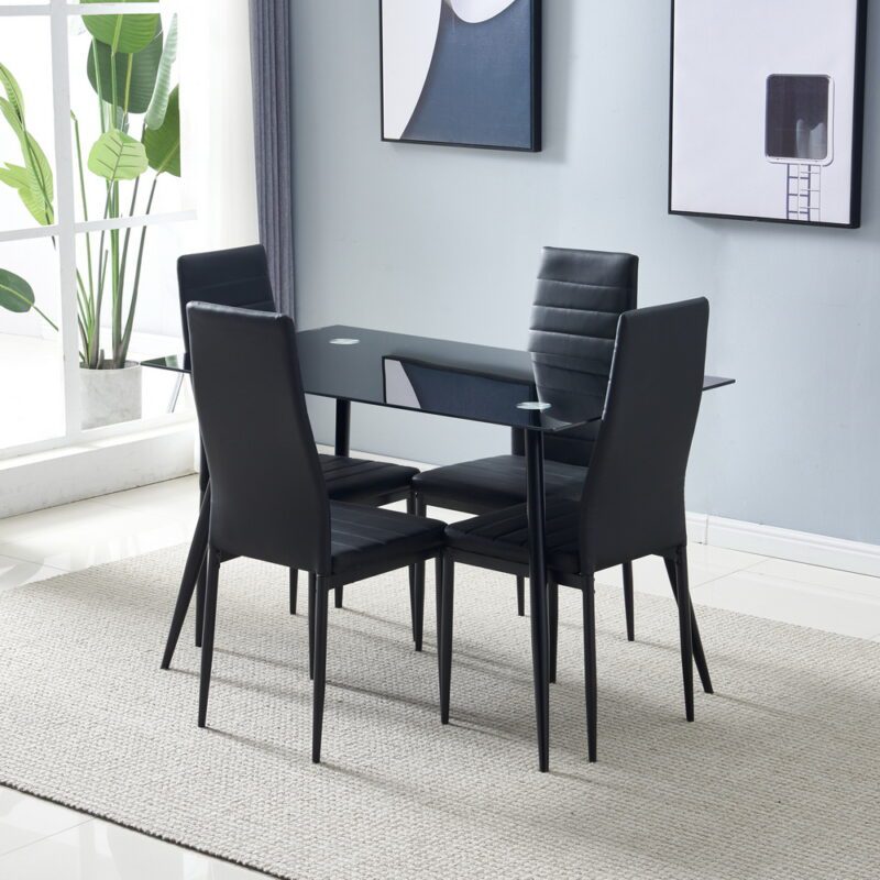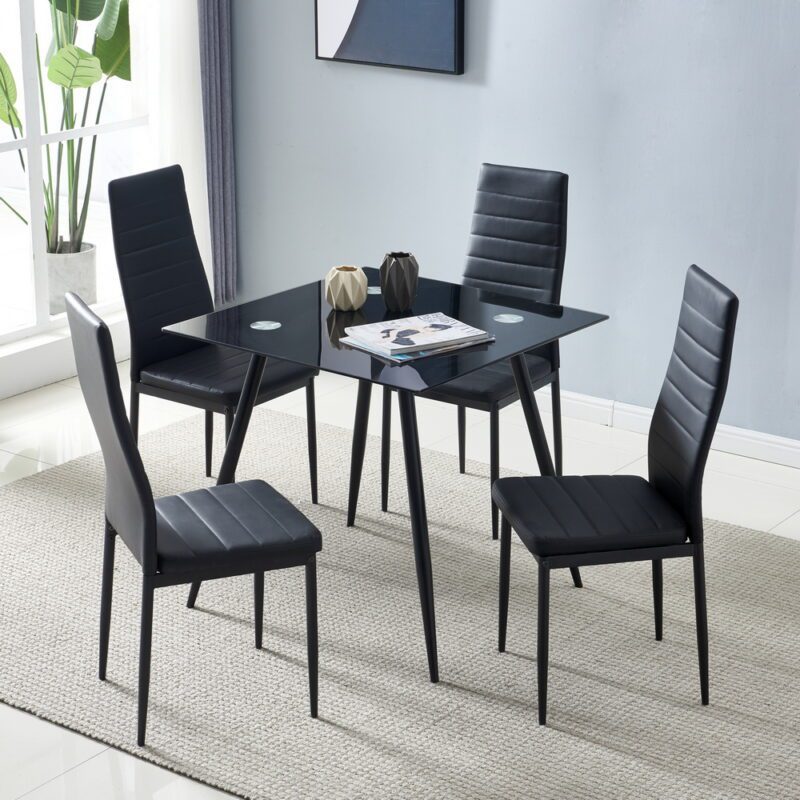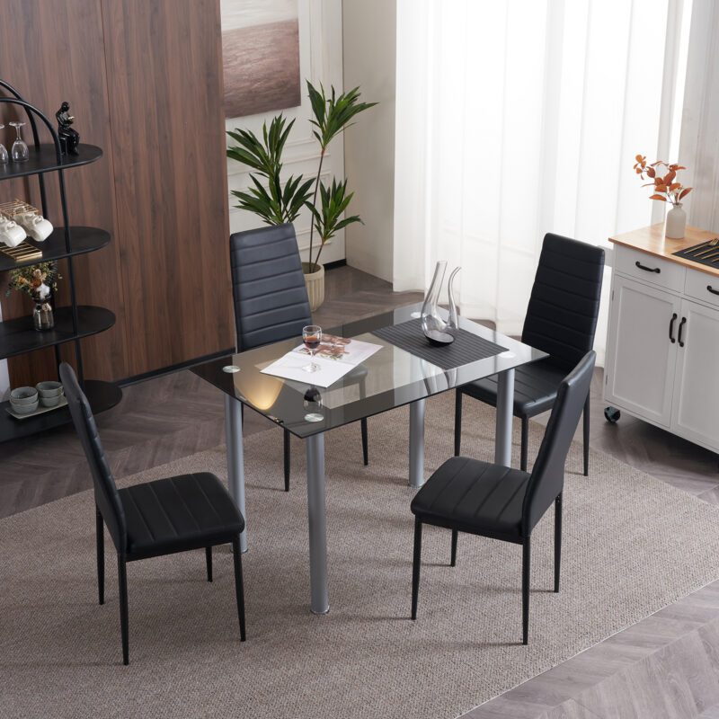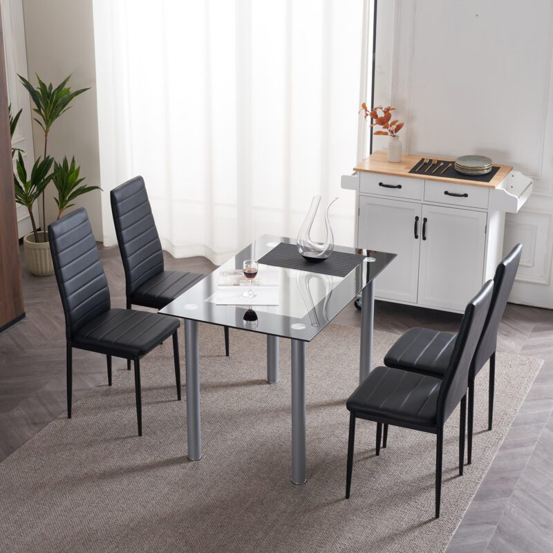Create an elegant dining space with this set of 4 black dining chairs. Featuring soft PU leather upholstery, these chairs combine durability with comfort. The waterproof, stain-resistant surface ensures easy maintenance, while the high-density foam cushion and ergonomic high-back design provide lasting support. Simple styling complements various table designs. Sturdy iron tube frames offer reliable stability with a 120kg weight capacity. Includes assembly tools for straightforward setup.