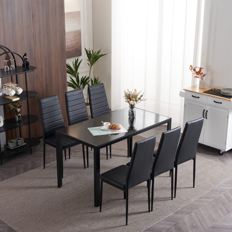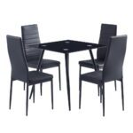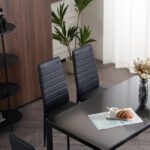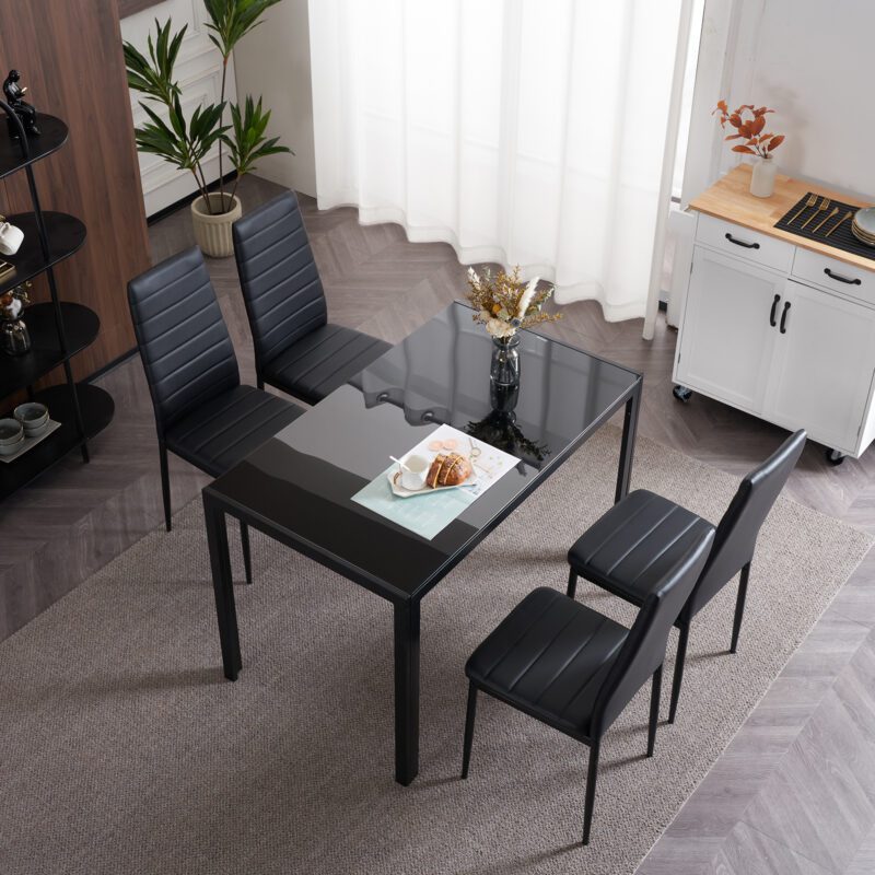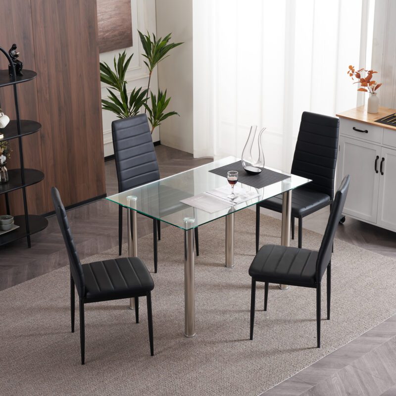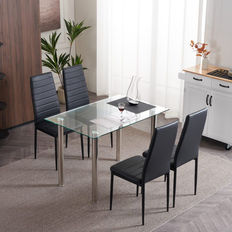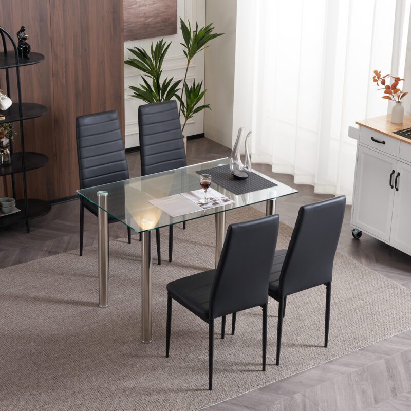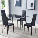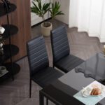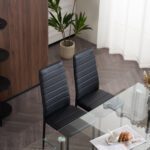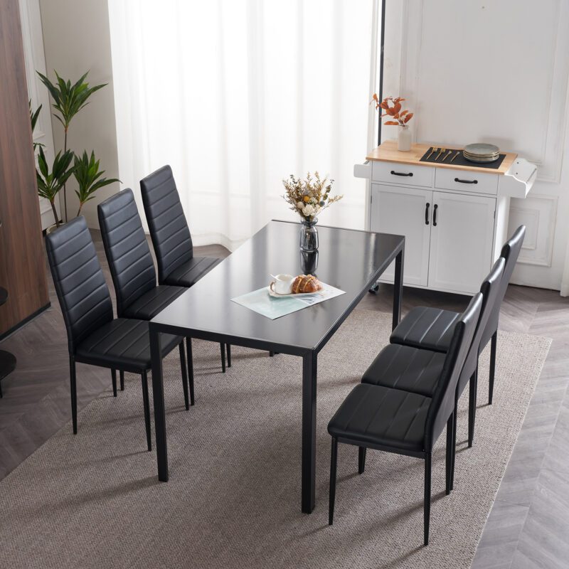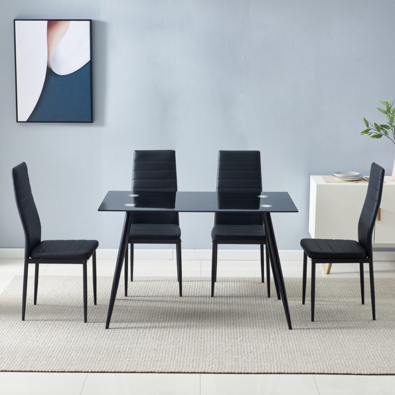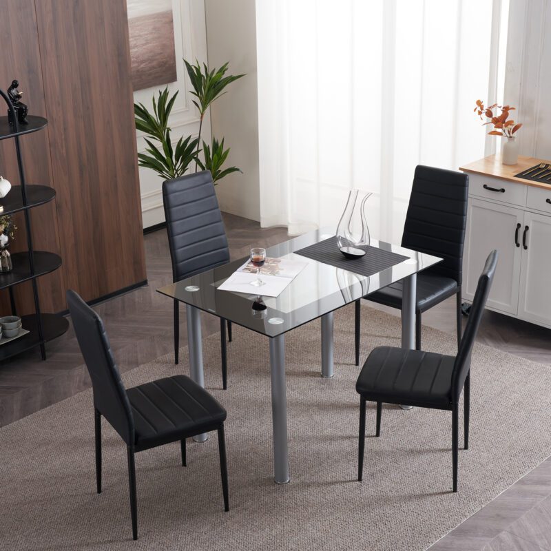 Create an elegant dining space with this set of 4 black dining chairs. Featuring soft PU leather upholstery, these chairs combine durability with comfort. The waterproof, stain-resistant surface ensures easy maintenance, while the high-density foam cushion and ergonomic high-back design provide lasting support. Simple styling complements various table designs. Sturdy iron tube frames offer reliable stability with a 120kg weight capacity. Includes assembly tools for straightforward setup.
