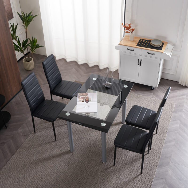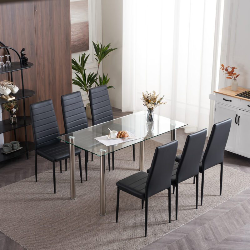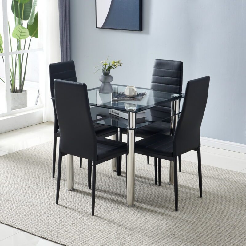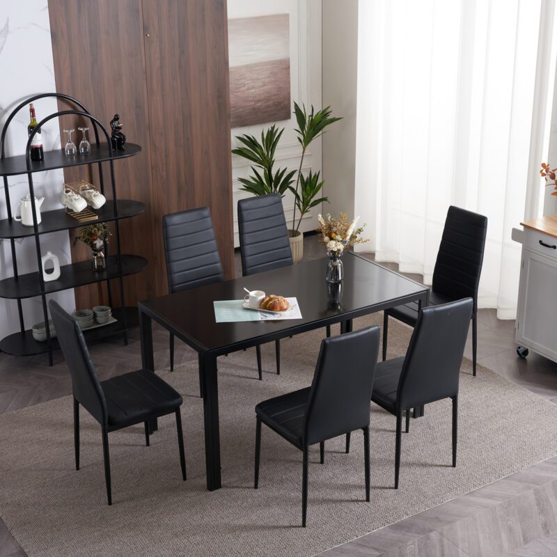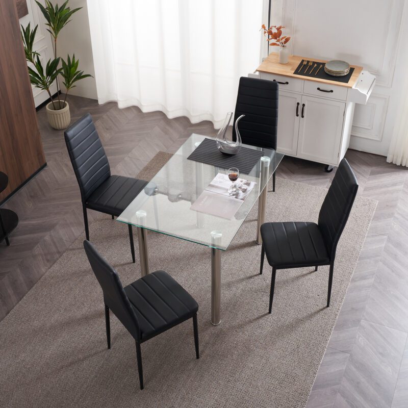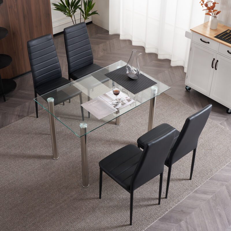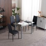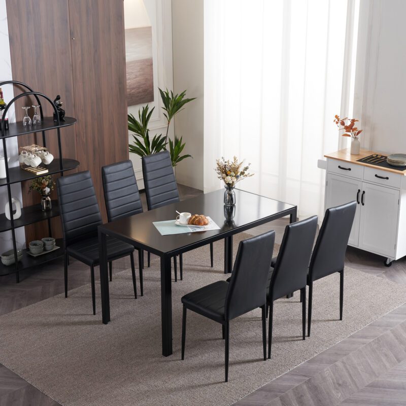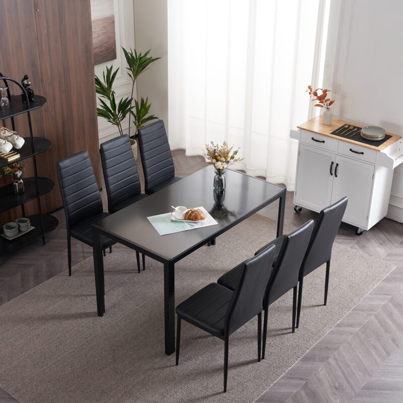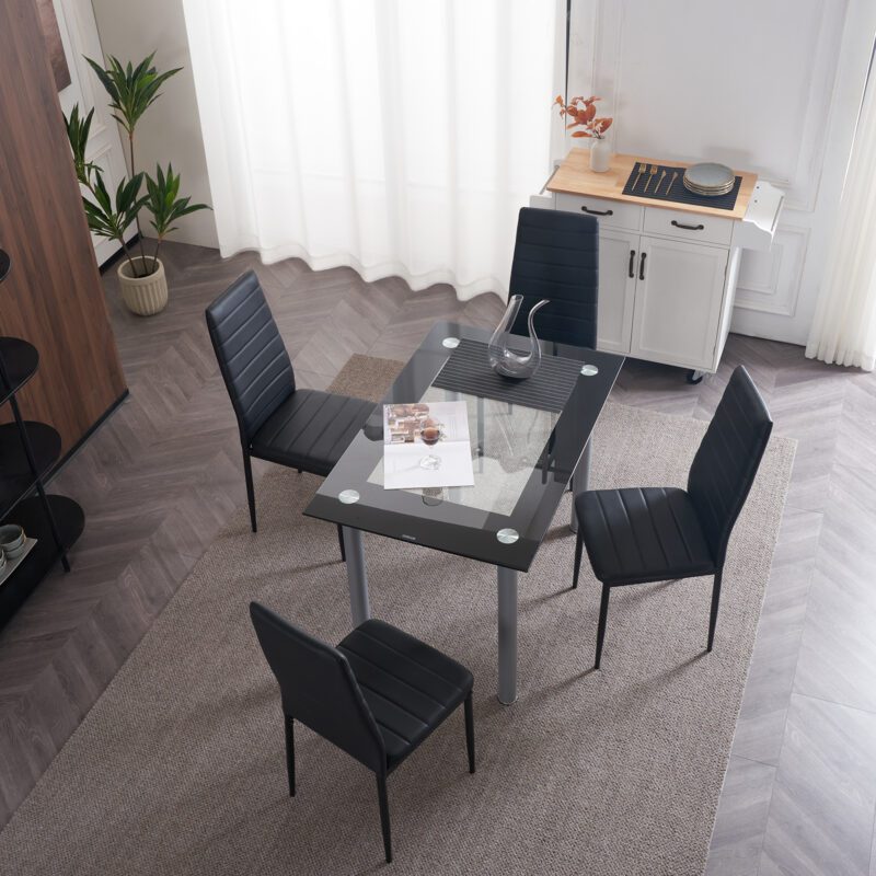 Create an elegant dining space with this set of 4 black dining chairs. Featuring soft PU leather upholstery, these chairs combine durability with comfort. The waterproof, stain-resistant surface ensures easy maintenance, while the high-density foam cushion and ergonomic high-back design provide lasting support. Simple styling complements various table designs. Sturdy iron tube frames offer reliable stability with a 120kg weight capacity. Includes assembly tools for straightforward setup.