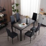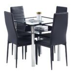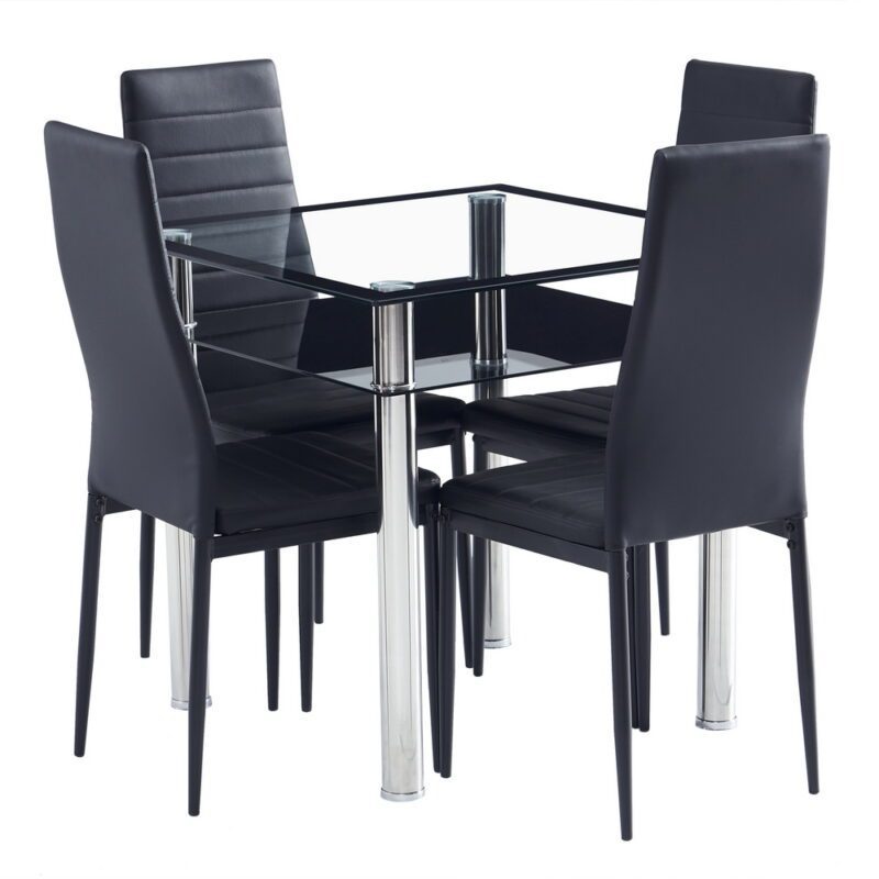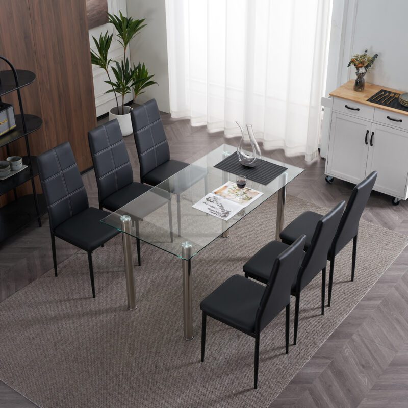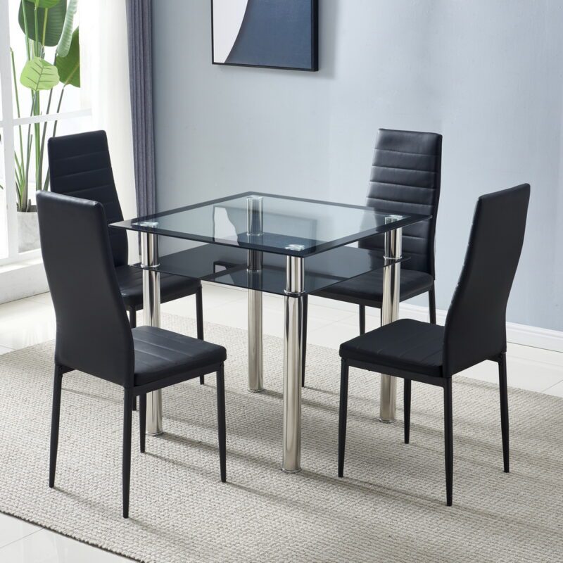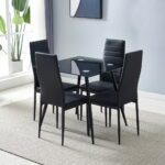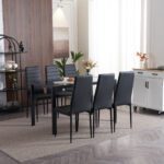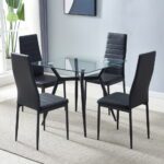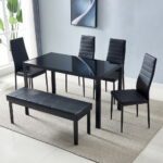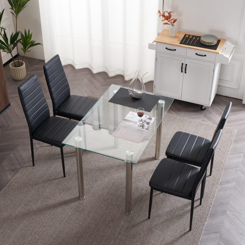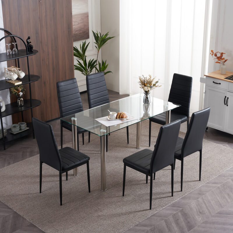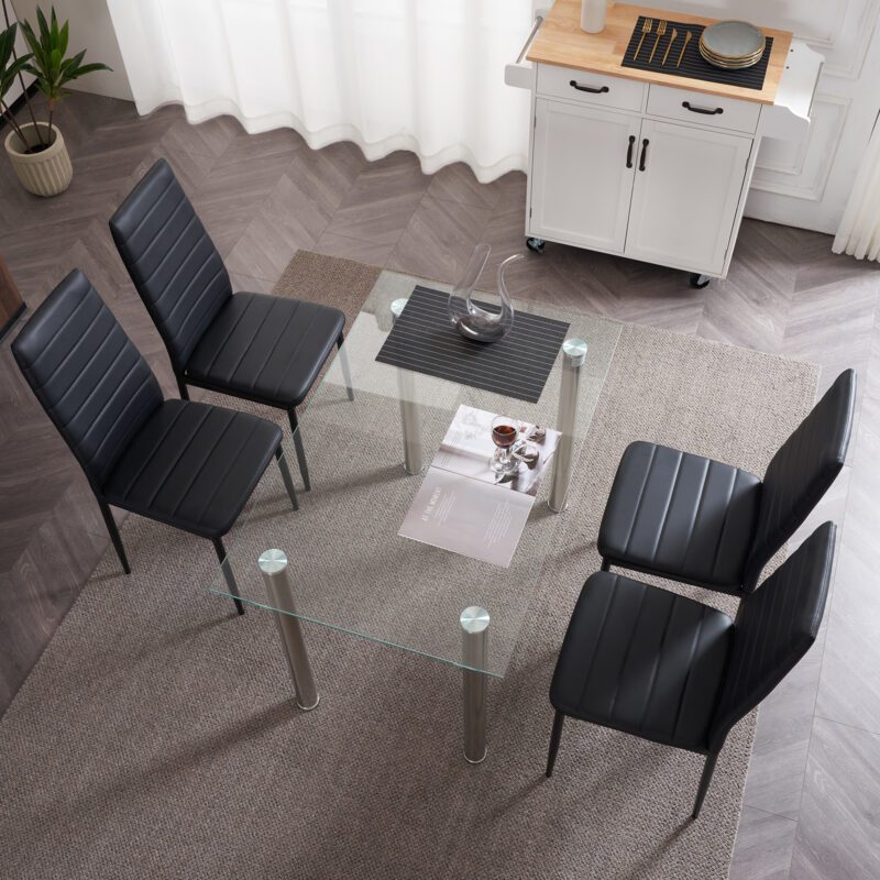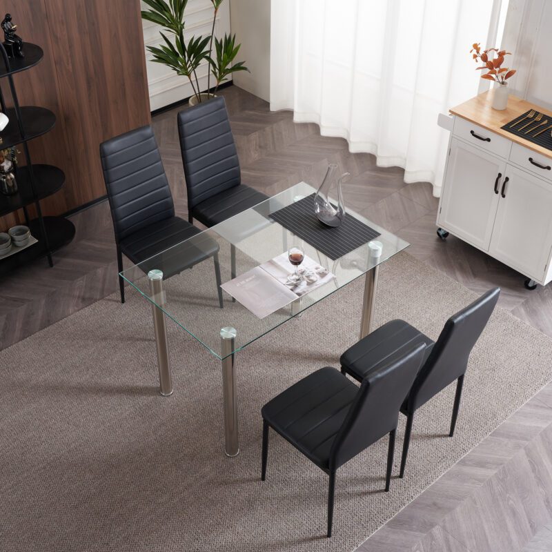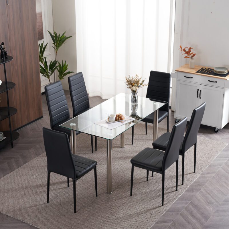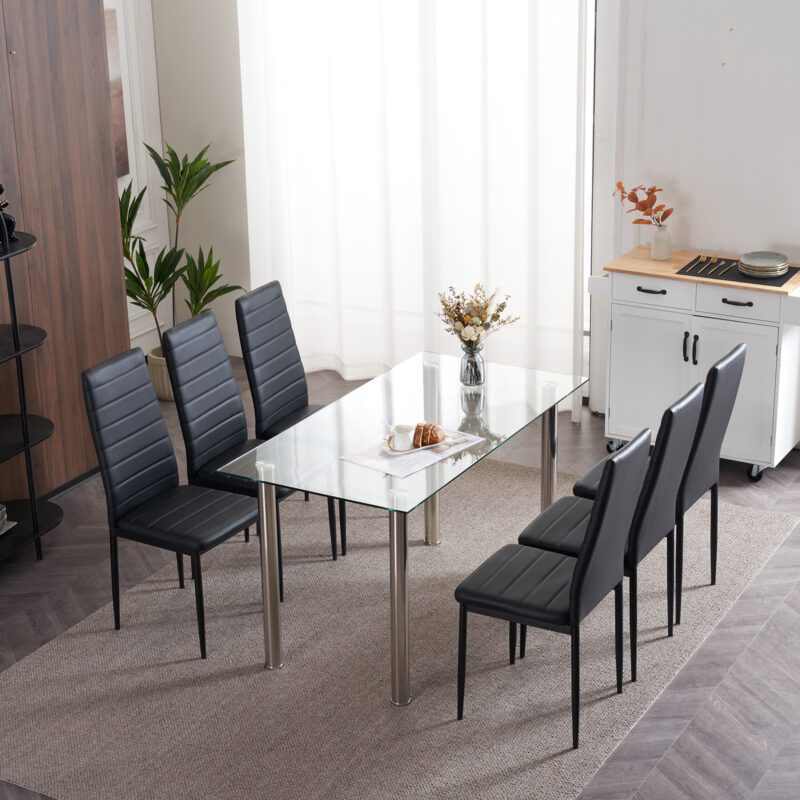 Create an elegant dining space with this set of 4 black dining chairs. Featuring soft PU leather upholstery, these chairs combine durability with comfort. The waterproof, stain-resistant surface ensures easy maintenance, while the high-density foam cushion and ergonomic high-back design provide lasting support. Simple styling complements various table designs. Sturdy iron tube frames offer reliable stability with a 120kg weight capacity. Includes assembly tools for straightforward setup.