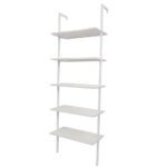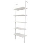 Industrial 5-Tier Ladder Bookcase with Metal Frame and Wood Shelves, White