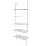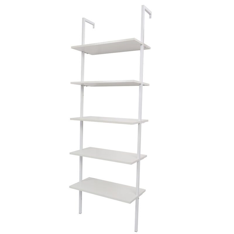 Perfect storage solution for living rooms, bedrooms, or offices. Display family photos, books, or decor with this industrial-style ladder bookcase. The open-shelving design adds modern style and creates an airy feel. Features multipurpose storage with five tiers for books, plants, or media devices. Constructed with durable MDF and a sturdy metal tube frame. Minimalist design complements any space. Easy assembly with included instructions. Material: MDF and metal frame. Color: White. Dimensions: 23.62 x 11.81 x 70.87 inches (60 x 30 x 180 cm). Shelf spacing: 12.5 inches. Includes one bookshelf. Note: Verify all parts upon delivery. Contact us with photos if pieces are missing for prompt resolution. Assemble according to the manual and secure connections for stability.