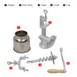 This home use hand crank grain grinder features adjustable grinding settings to control grain coarseness. Made from durable aluminum alloy, it offers sturdy construction for long-lasting performance. The ergonomic hand crank design ensures efficient operation while grinding various grains. Model 500# in silver measures 17.12 x 5.31 inches (43.5 x 13.5 cm) and weighs 120.28 oz (3410g). Package includes one grinder.