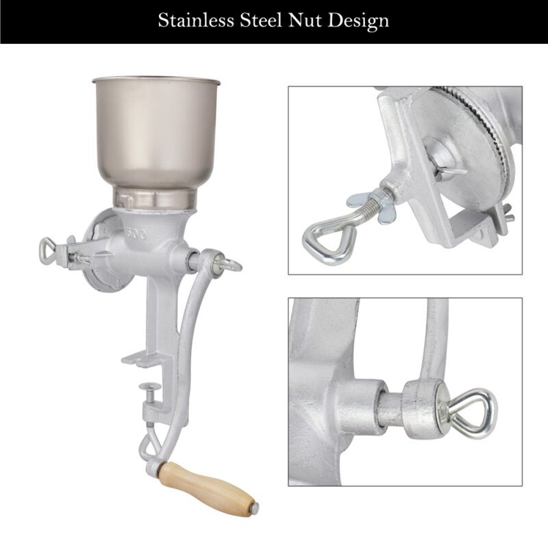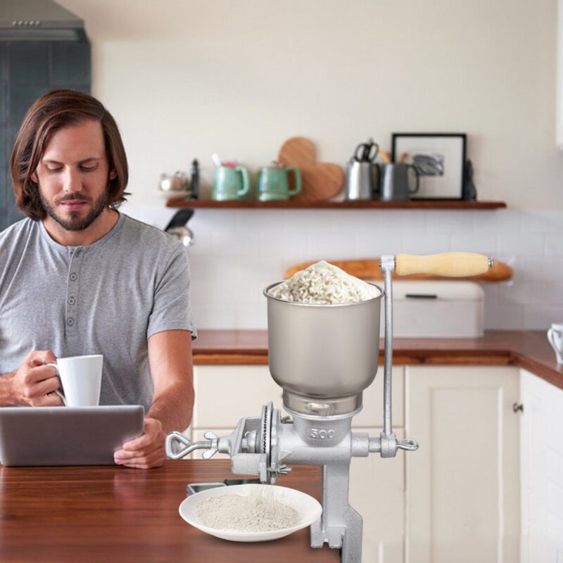 500# Home Use Hand Crank Adjustable Grain Grinder – Silver