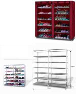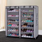 Organize footwear efficiently with this gray non-woven fabric shoe rack. Featuring 6 rows and 12 compartments, it provides ample storage while saving space. Constructed from durable alloy and plastic materials for lasting use. Simple to assemble and clean with compact dimensions of 42.1 x 11.61 x 45.3 inches (107 x 29.5 x 115 cm). Includes instruction manual for easy setup.