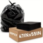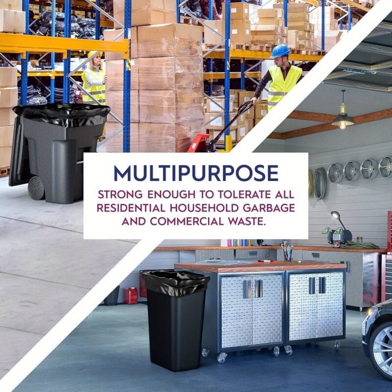These 65-gallon trash bags come in a pack of 100 and feature thickened material for durability. Resistant to tears, punctures, and leaks, they’re suitable for outdoor clean-ups, moving boxes, bulk waste disposal, and both indoor/outdoor use. The black design conceals contents while providing reliable performance for yards, garages, or construction sites. A cost-effective solution for heavy-duty waste management needs.