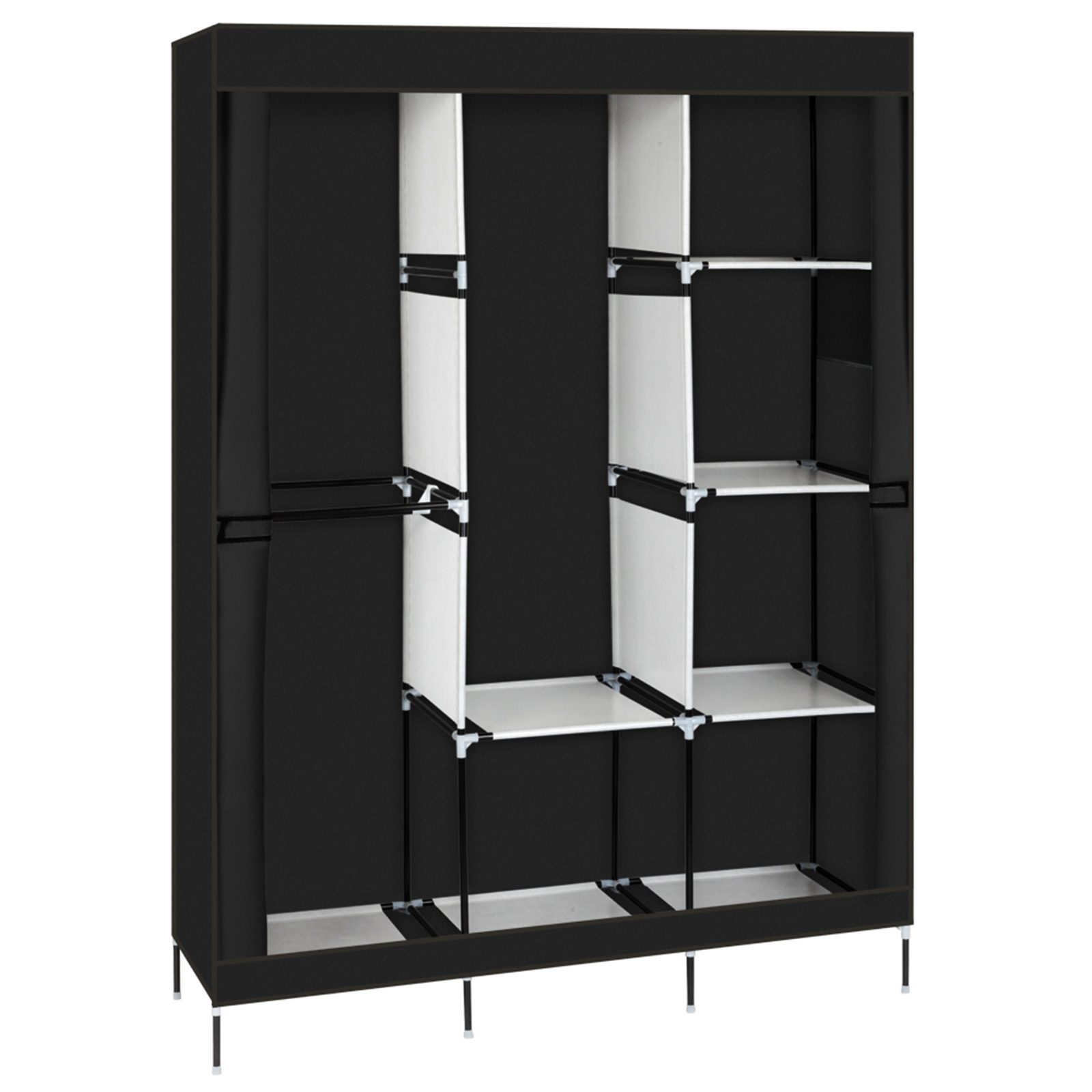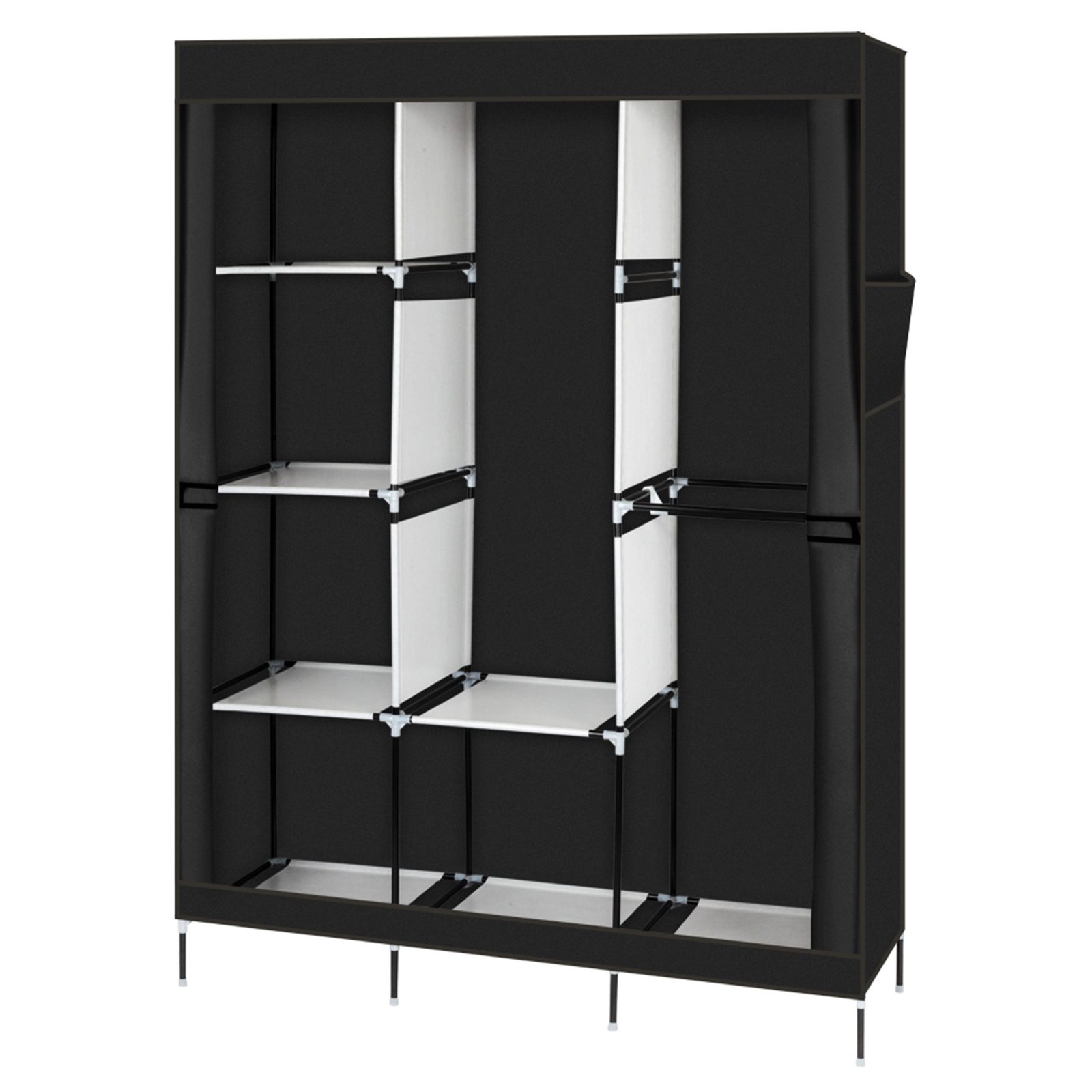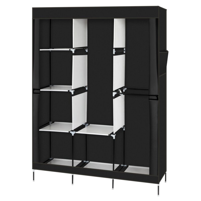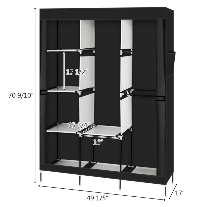71 Inch Portable Wardrobe Closet with Shelves and Hanging Rod, Black