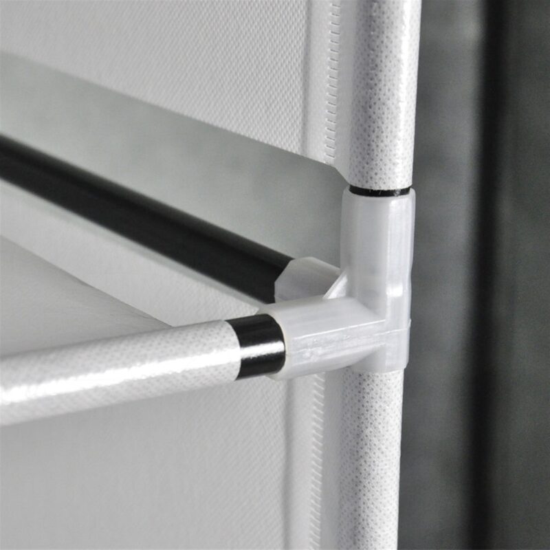 – Materials: Non-woven fabric, steel tubes, plastic connectors