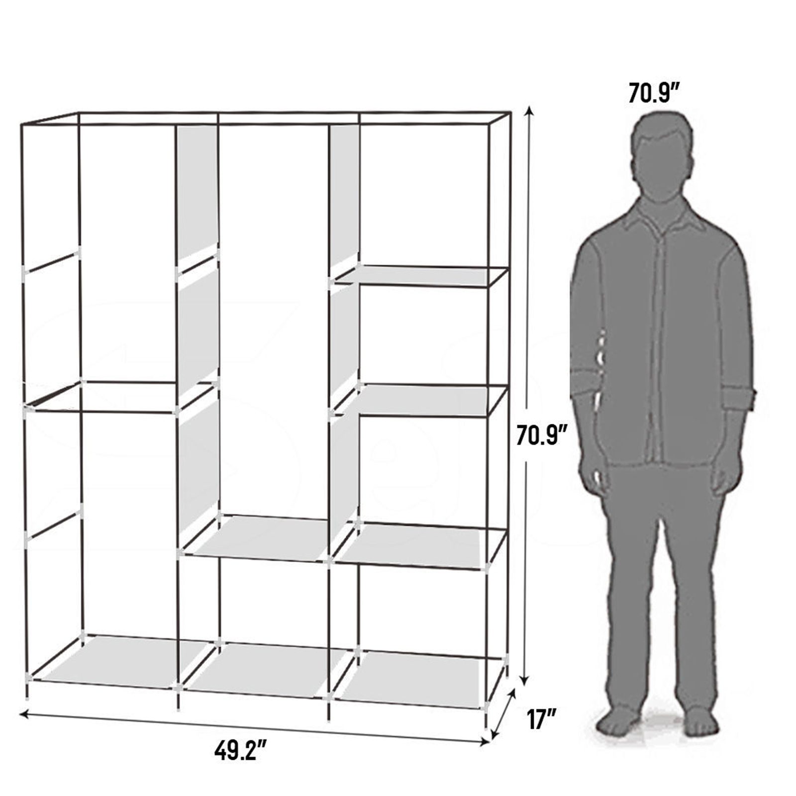 – Dimensions: 49.2” W x 17” D x 70.9” H (125 x 43.18 x 180 cm)