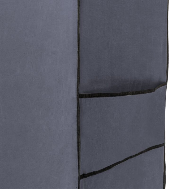 This 71-inch gray portable closet features a durable non-woven fabric cover, steel frame, and plastic connectors for long-term use. Its space-saving dimensions (49.2”W x 17”D x 70.9”H) fit small rooms and walk-in closets. Includes a movable clothes hanging rod and 8 waterproof fabric shelves for versatile storage of hanging garments and folded items. The zippered dustproof cover protects contents from dust while allowing easy access. Tool-free assembly makes setup simple. Ideal for organizing clothes and accessories efficiently.