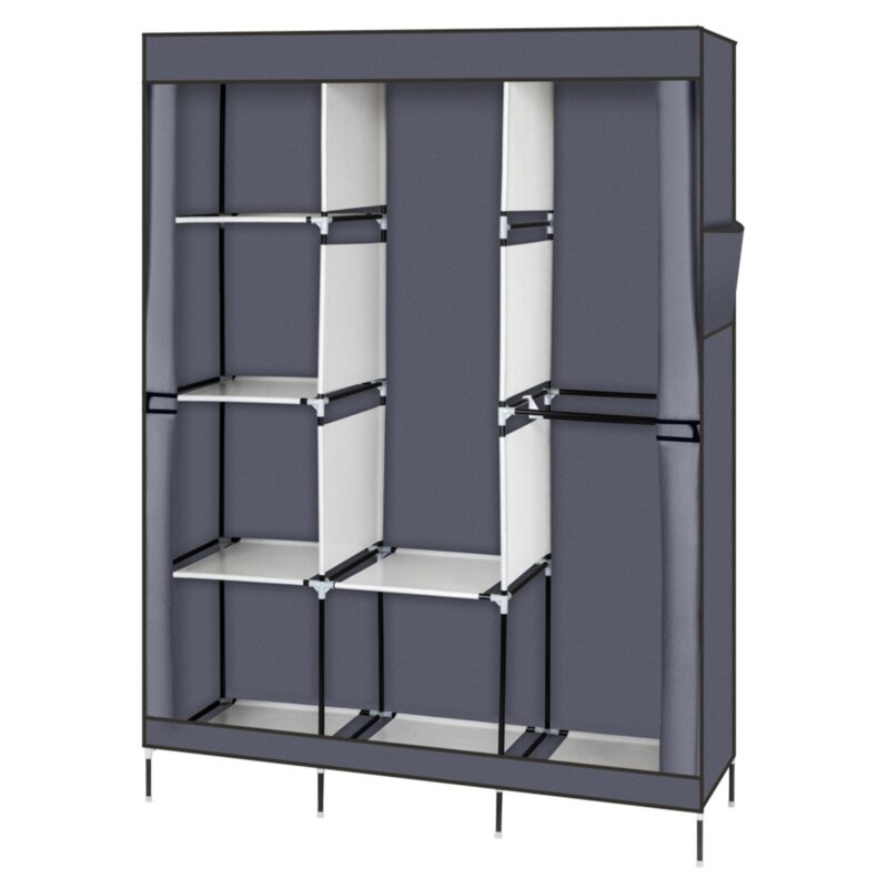 71″ Portable Closet with Shelves, Gray Clothes Storage Organizer
