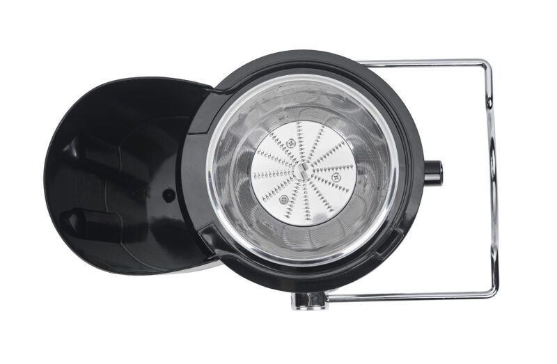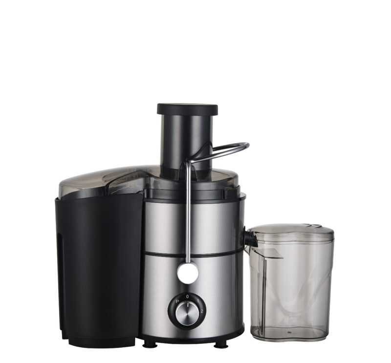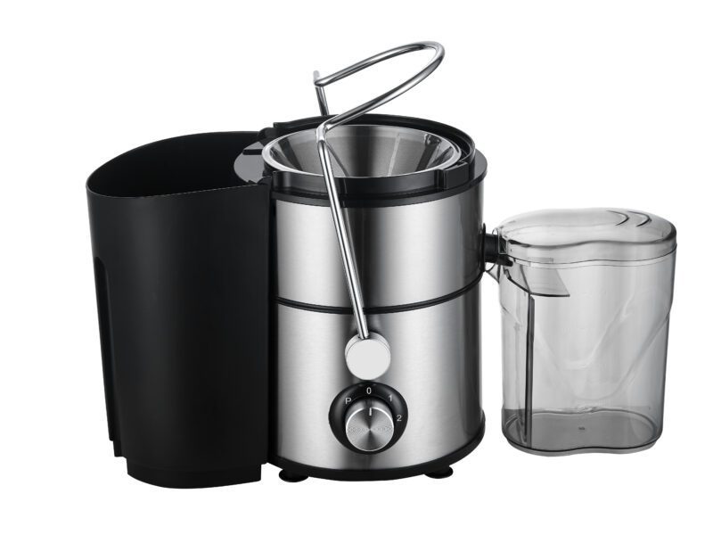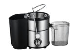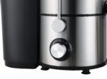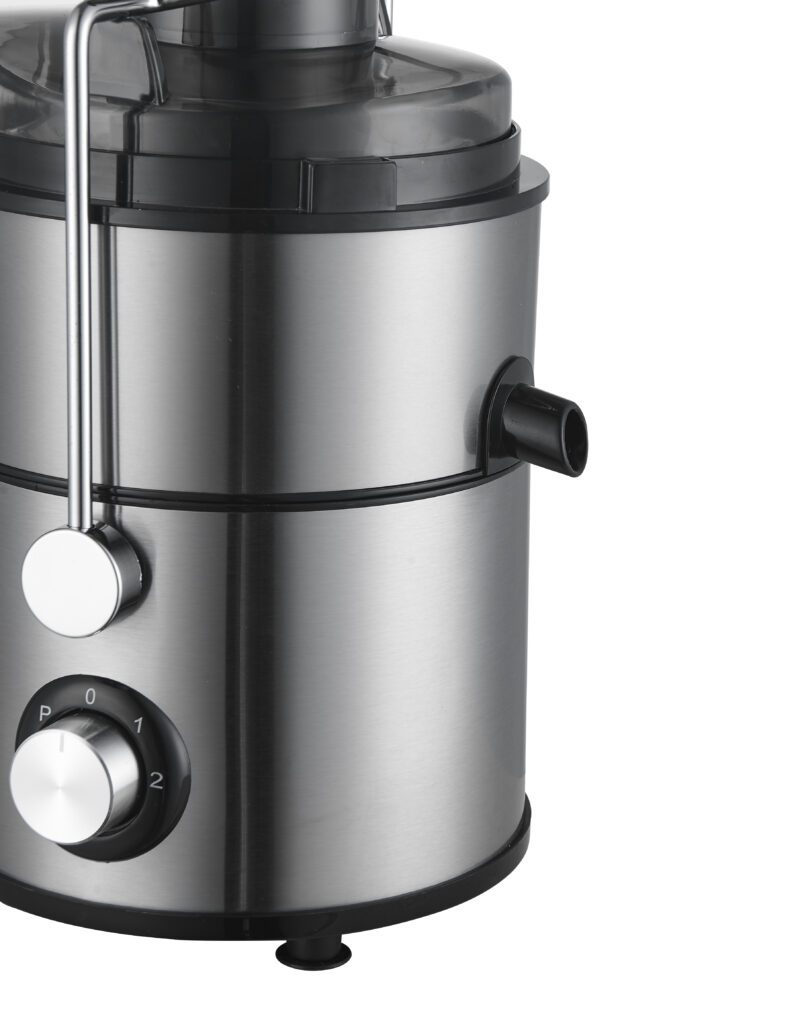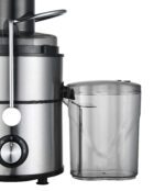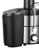This 900W centrifugal juicer features a 3-inch feed chute for whole fruits and vegetables, with a 30 oz BPA-free juice jug and 50 oz pulp container. The powerful motor efficiently processes produce in seconds while the built-in foam separator reduces clogging. Safety features include a locking arm and overheat protection. All removable parts are dishwasher safe (top rack) for easy cleaning. Ideal for home use.