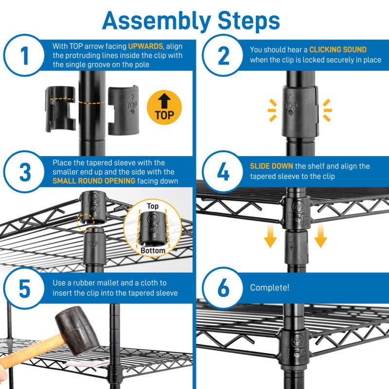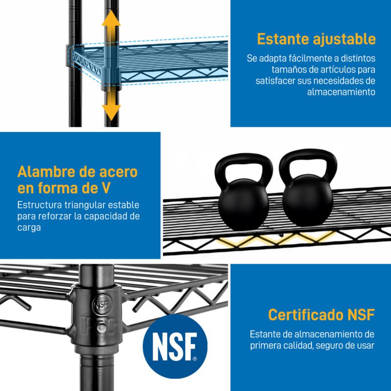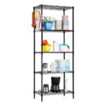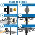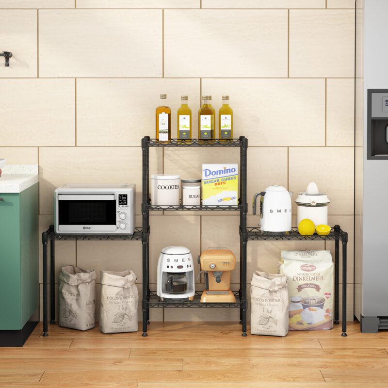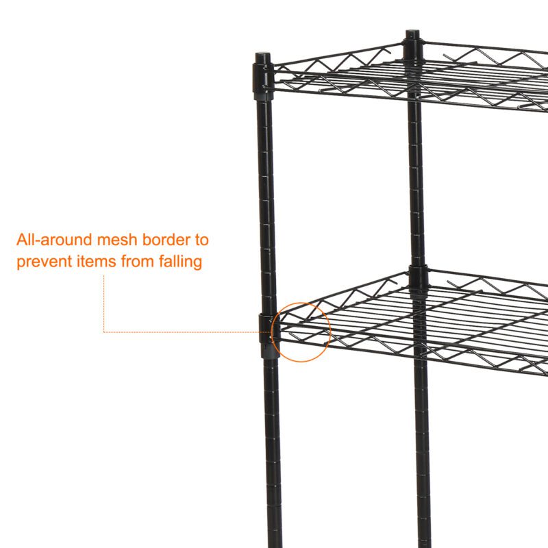 This modular floor-standing storage rack features a detachable carbon steel and PP construction. The black finish provides rust resistance while mesh shelves secure items. Tool-free assembly allows customizable shelf heights. Ideal for organizing spaces in homes, hotels, or restaurants.