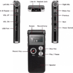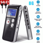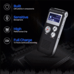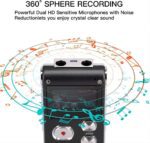 8GB internal memory stores up to 650 hours of recordings without additional cards. Features dual ultra-sensitive microphones with dynamic noise reduction for clear audio capture from distances up to 40ft. Easily transfer files to Mac or PC via included USB cable. Fast charging through mini USB port with built-in rechargeable battery. Telephone recording function compatible with landline phones (optimal performance with cordless phones).