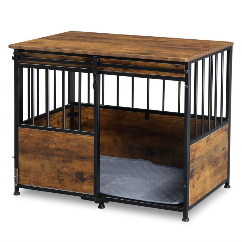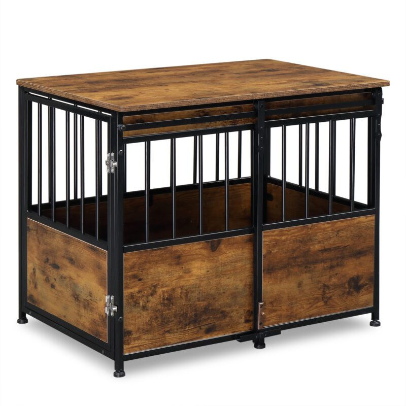 Large/Medium Dog Crate Side Table – Double Doors, Rustic Brown