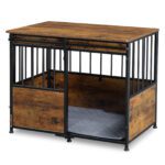 Enhance your home decor while providing a cozy space for your pet with this Dog Crate Furniture. This versatile piece serves as a secure dog kennel and an elegant side table, end table, or nightstand. Featuring a rustic brown finish, it complements any room while giving your pet a comfortable resting area. Ideal for living rooms and bedrooms, this functional furniture combines practicality with style.